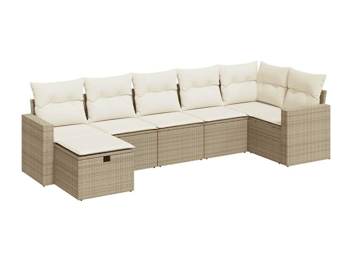 Set sofás de jardín 7 piezas y cojines ratán sintético beige