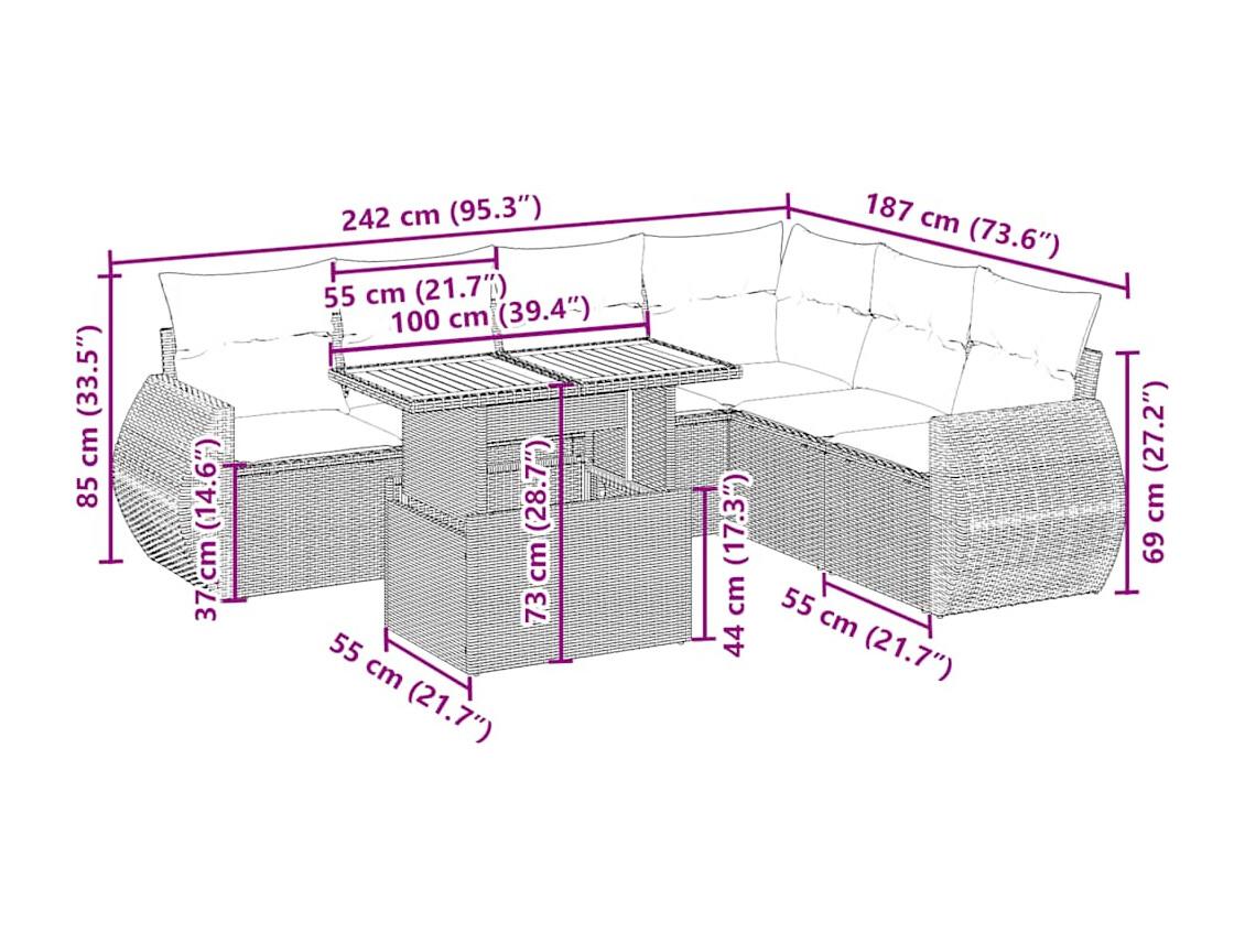Set sofás de jardín 7 piezas y cojines ratán sintético beige