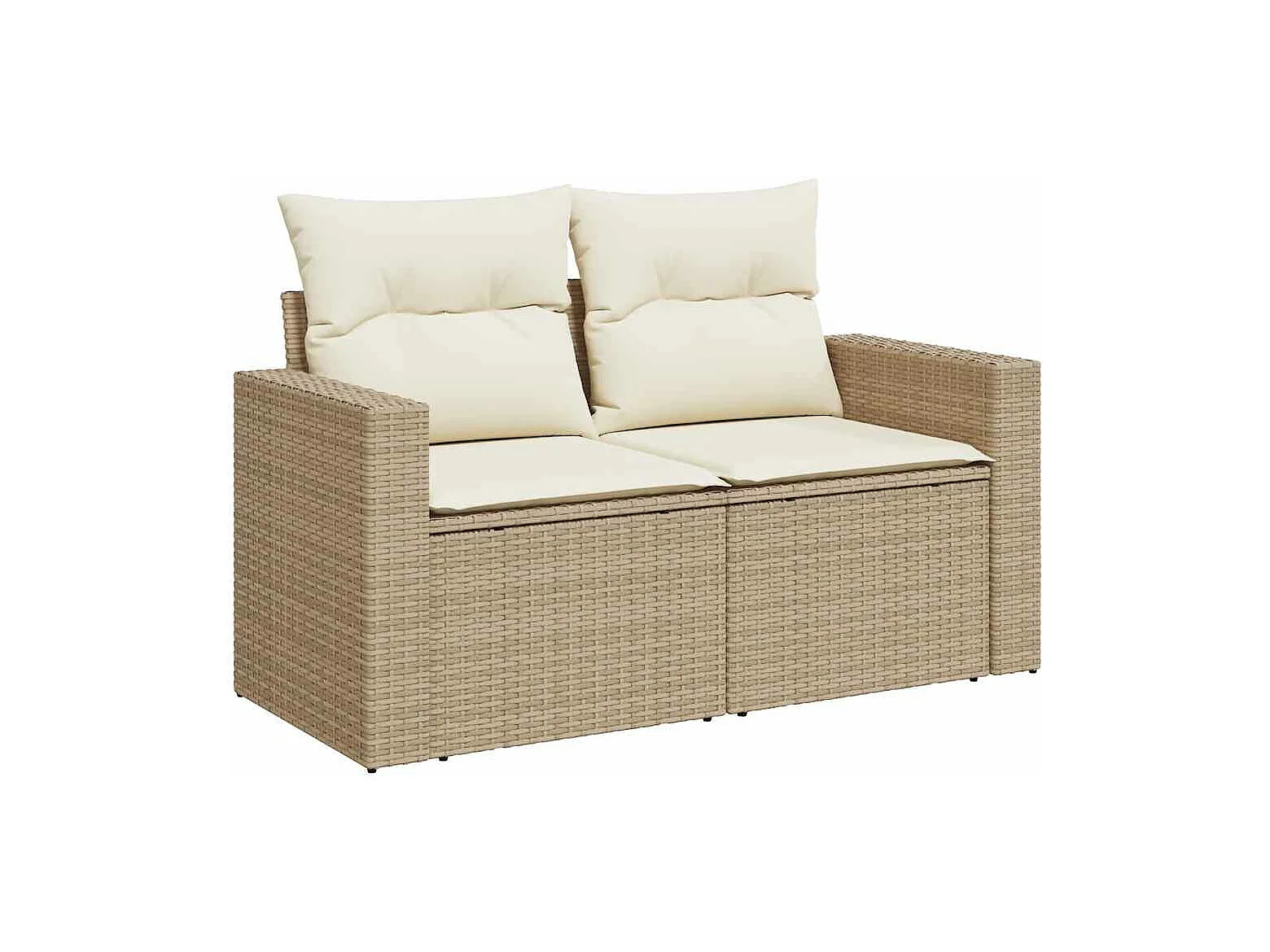 Set sofás de jardín 7 piezas y cojines ratán sintético beige