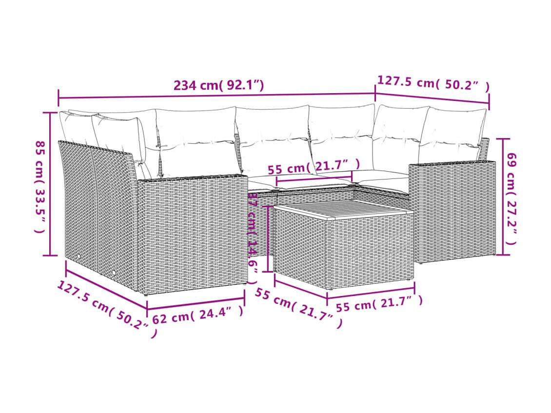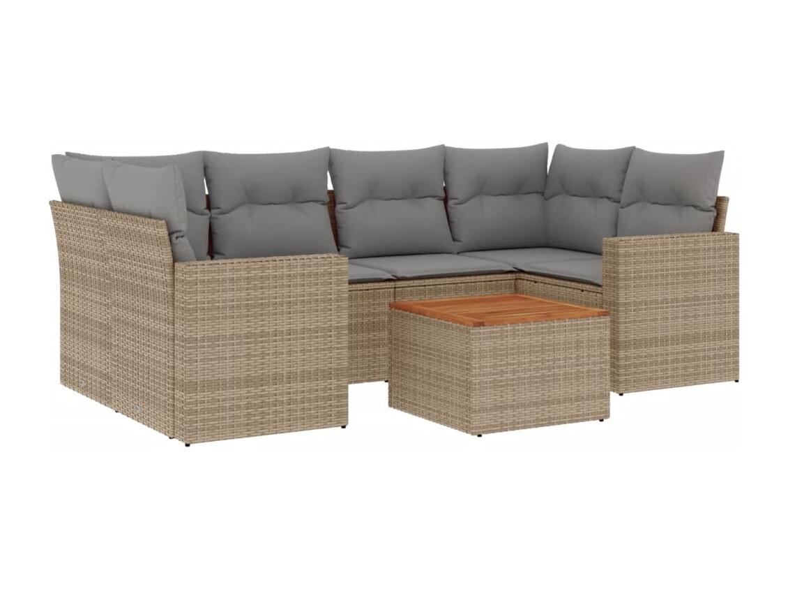 Set sofás de jardín 7 piezas y cojines ratán sintético beige