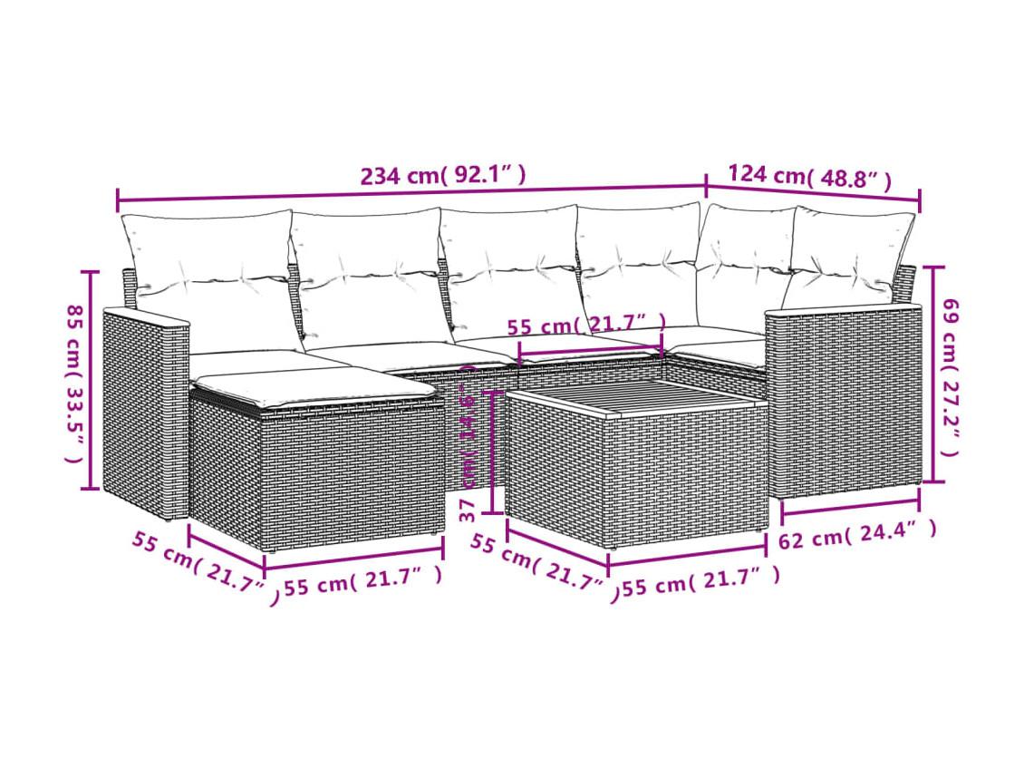 Set sofás de jardín 7 piezas y cojines ratán sintético beige