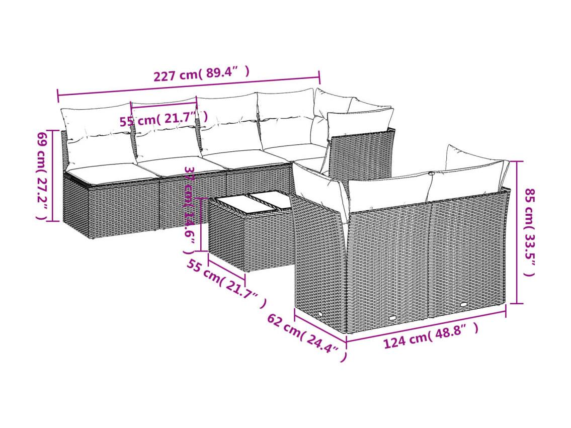 Set sofás de jardín 8 piezas y cojines ratán sintético marrón
