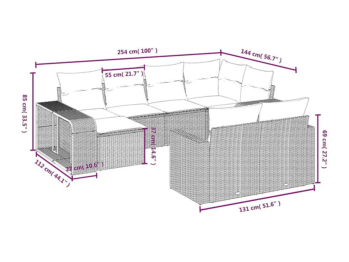 Set de sofás de jardín 8 piezas y cojines ratán sintético gris