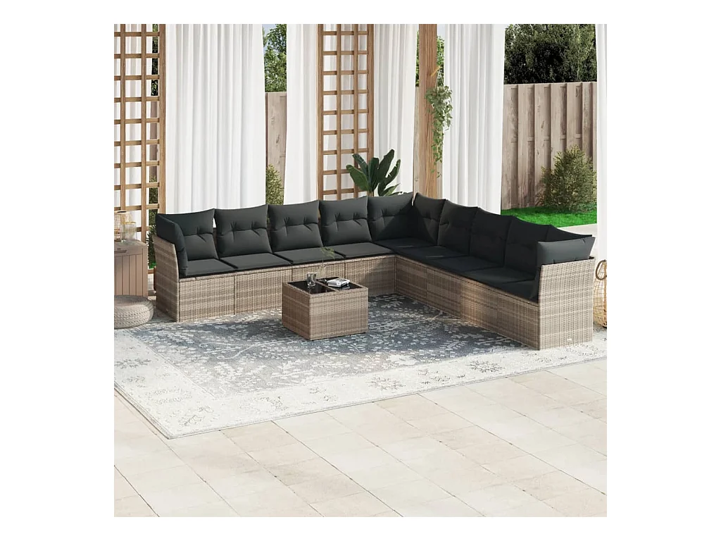 Set sofás jardín 10 piezas con cojines ratán sintético gris claro