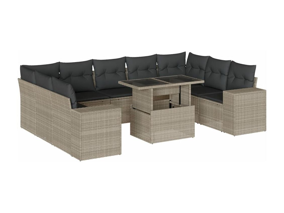 Set sofás jardín 10 piezas con cojines ratán sintético gris claro