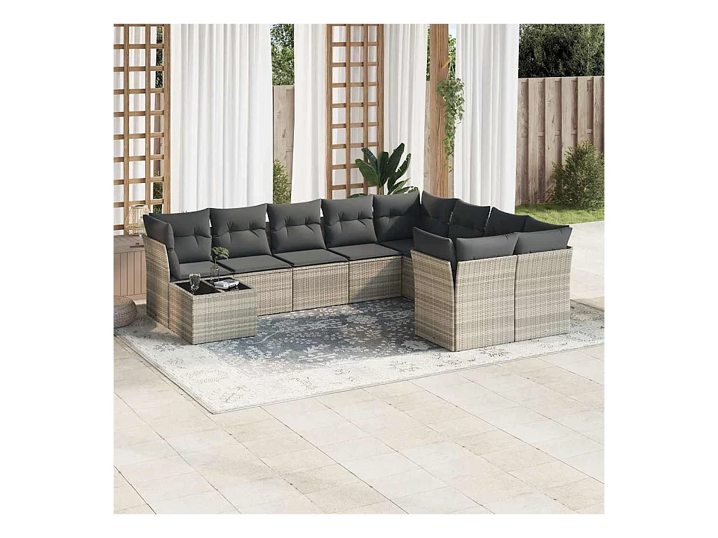 Set sofás jardín 10 piezas con cojines ratán sintético gris claro