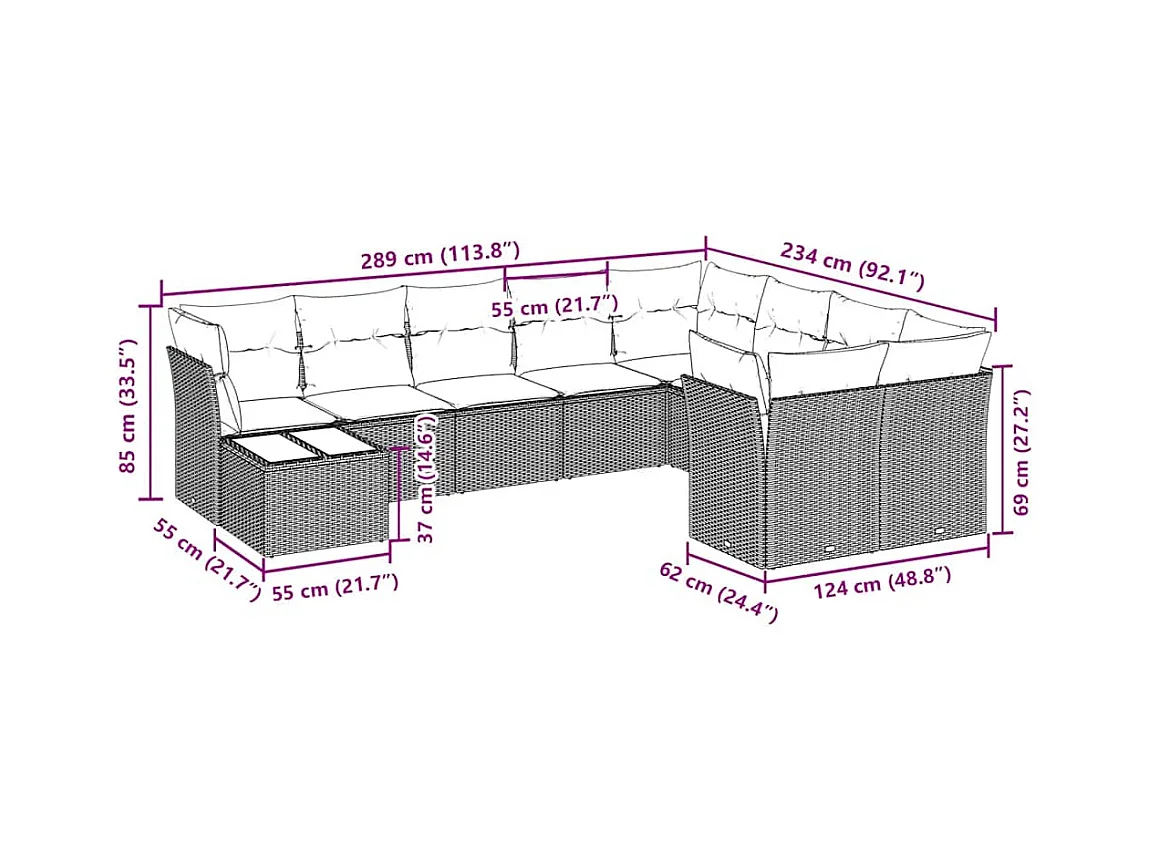 Set de sofás de jardín y cojines 10 piezas ratán sintético gris