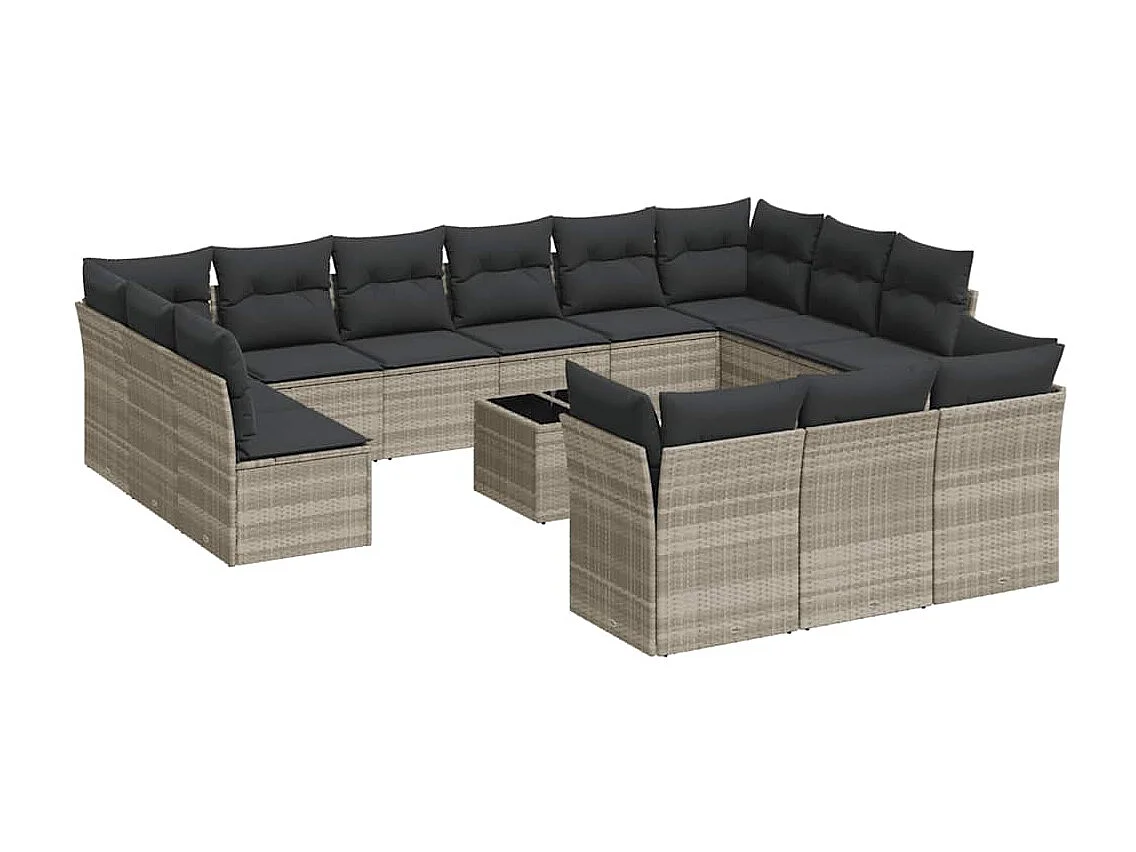 Set sofás jardín 14 piezas con cojines ratán sintético gris claro
