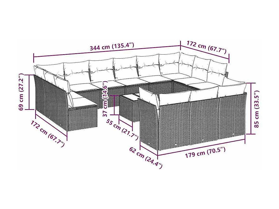 Set sofás de jardín con cojines 13 piezas ratán sintético gris