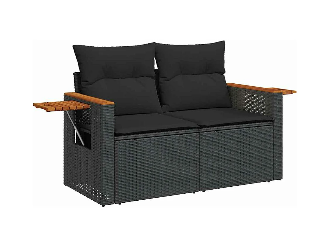 Set sofás jardín y cojines 10 piezas ratán sintético acacia negro
