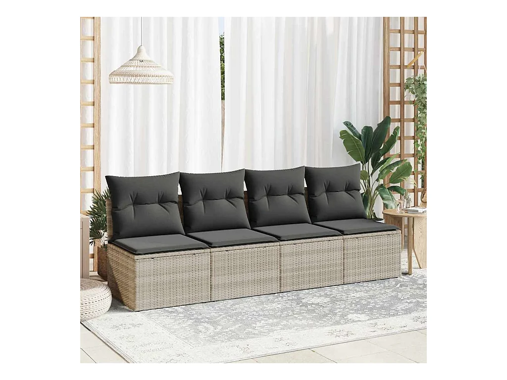 Set sofás jardín y cojines 4 piezas ratán sintético acacia gris