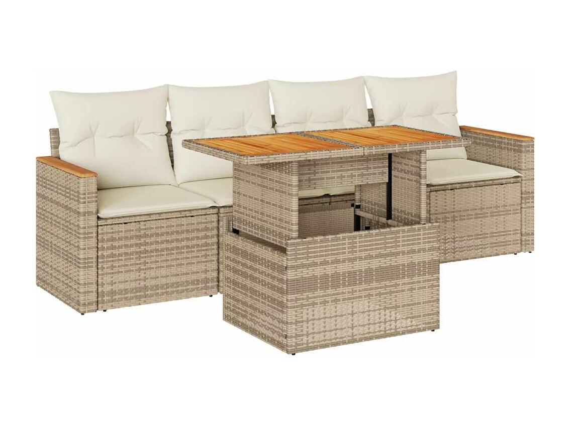 Set sofás jardín y cojines 5 piezas ratán sintético acacia beige