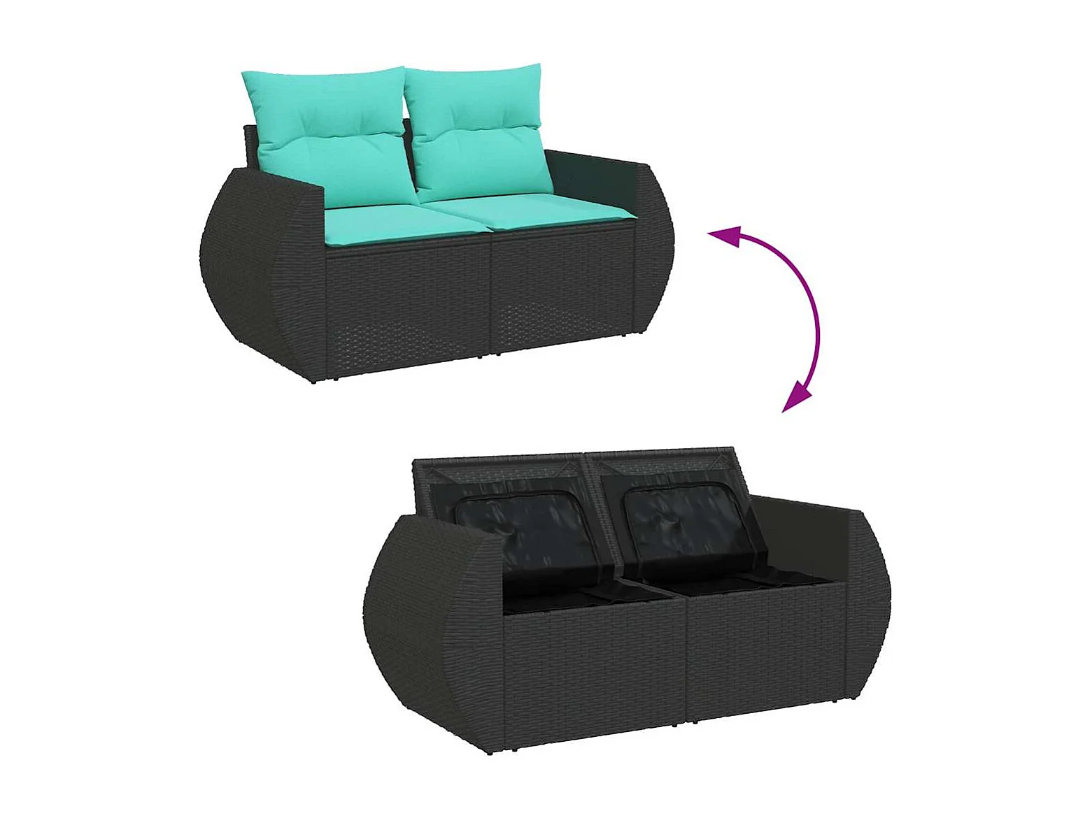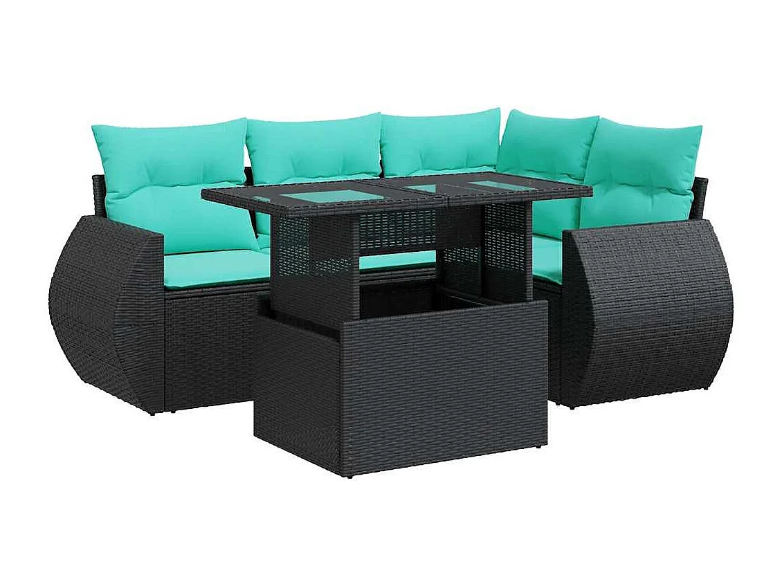 Set sofás jardín y cojines 5 piezas ratán sintético acacia negro