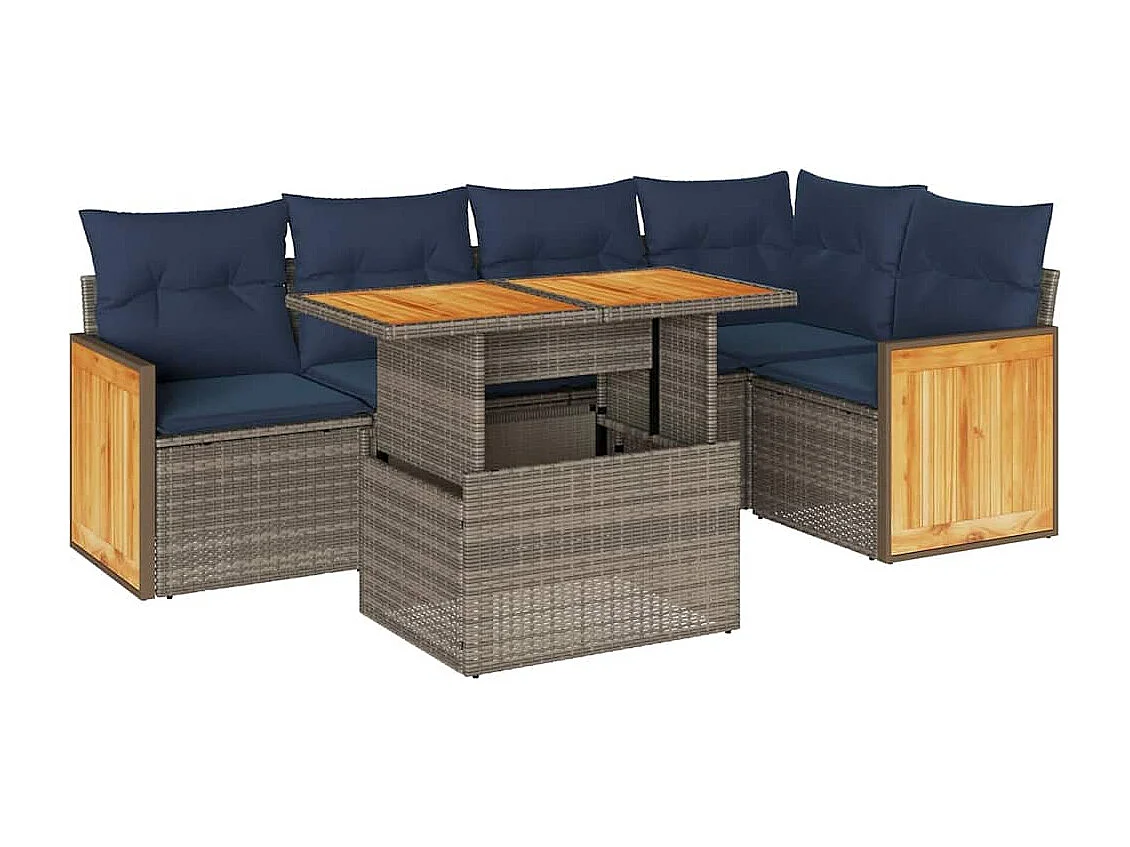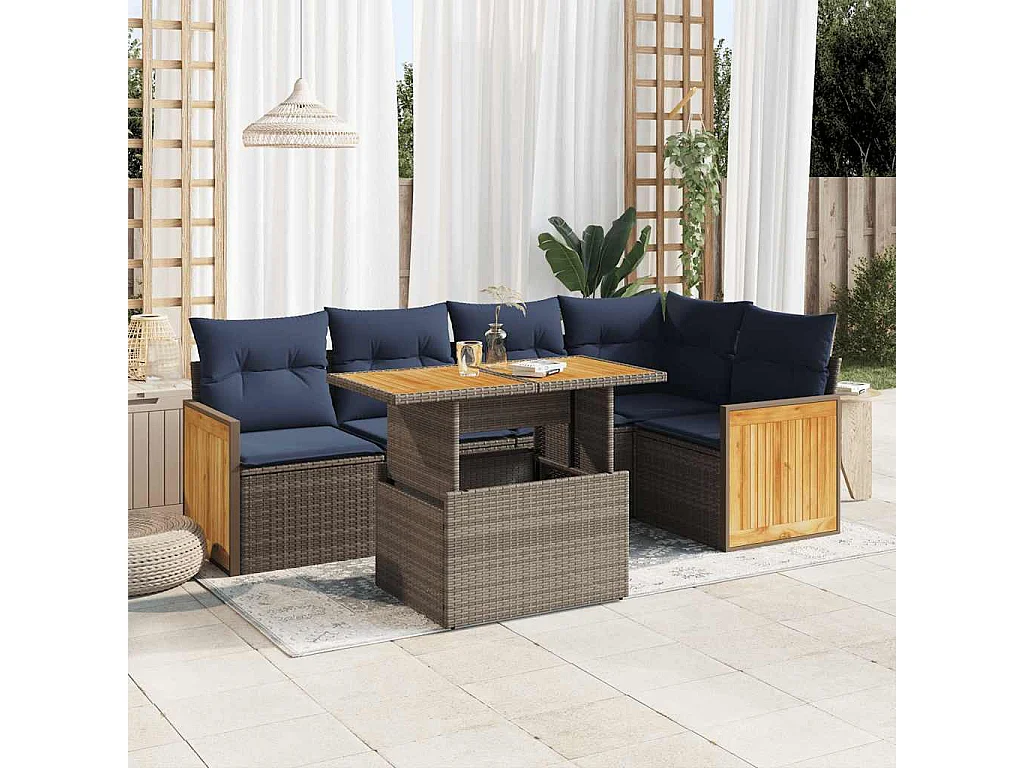 Set sofás jardín y cojines 6 piezas ratán sintético acacia gris