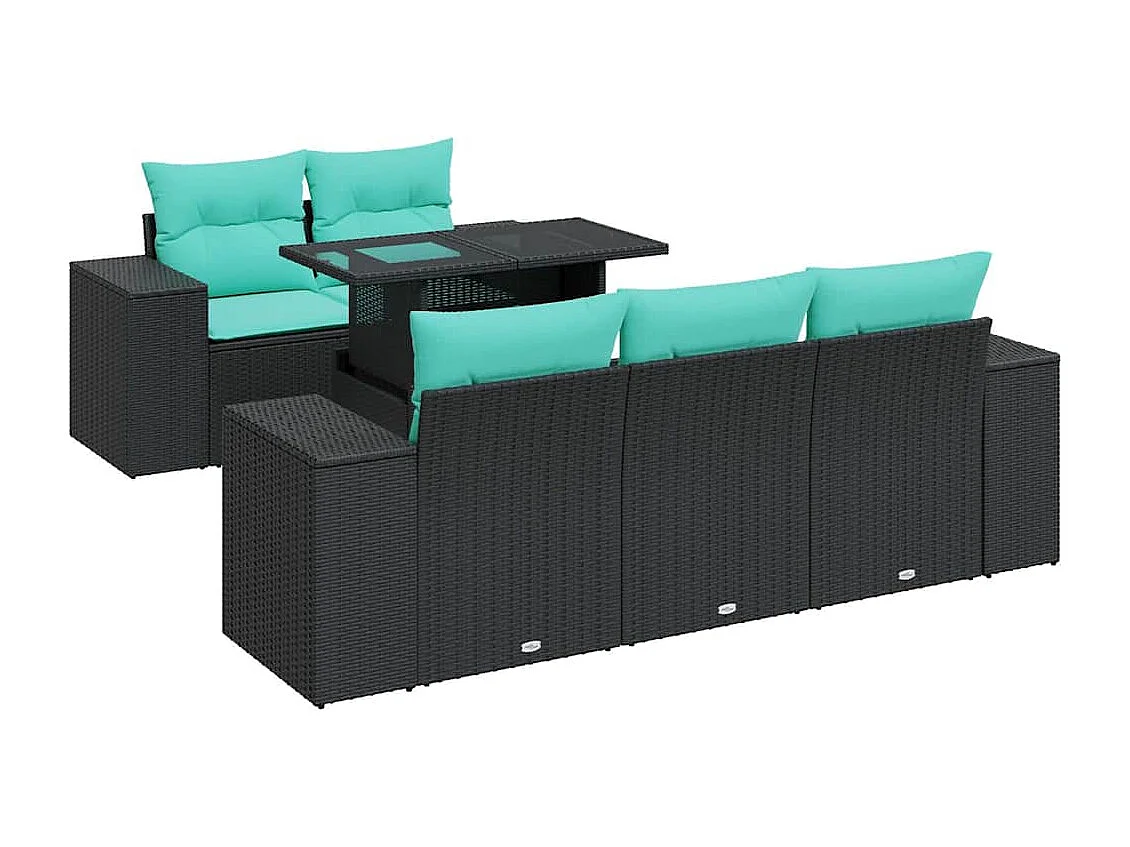 Set sofás jardín y cojines 6 piezas ratán sintético acacia negro