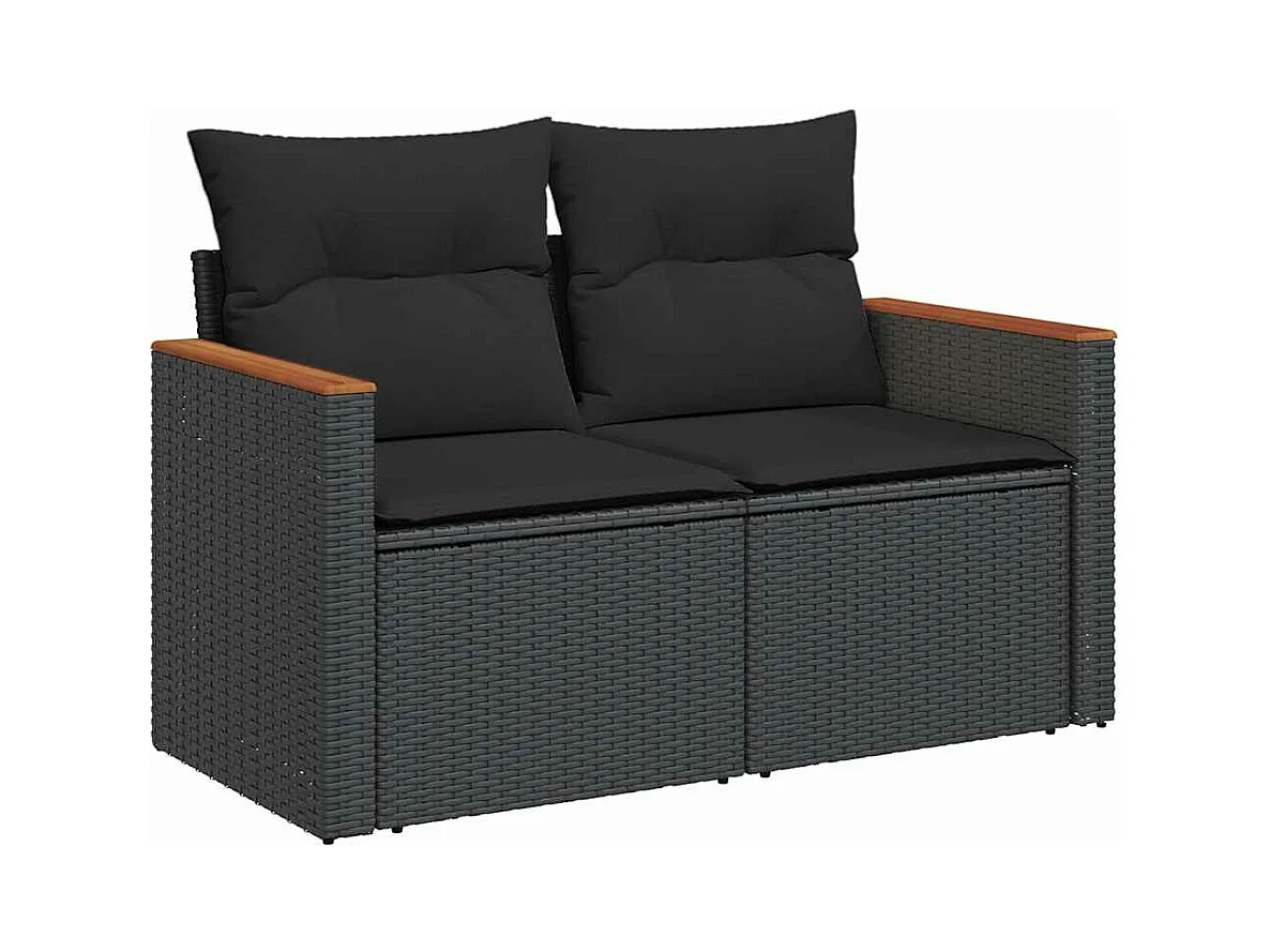 Set sofás jardín y cojines 9 piezas ratán sintético acacia negro