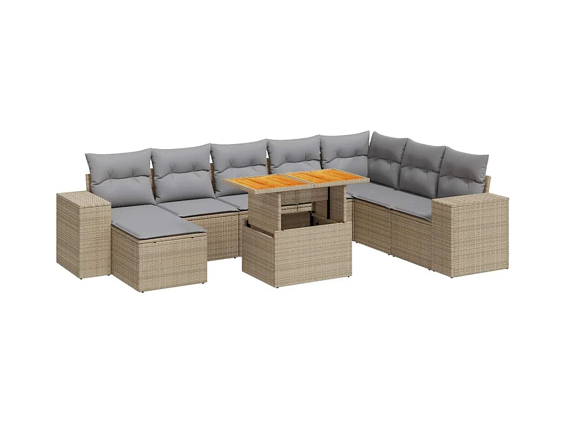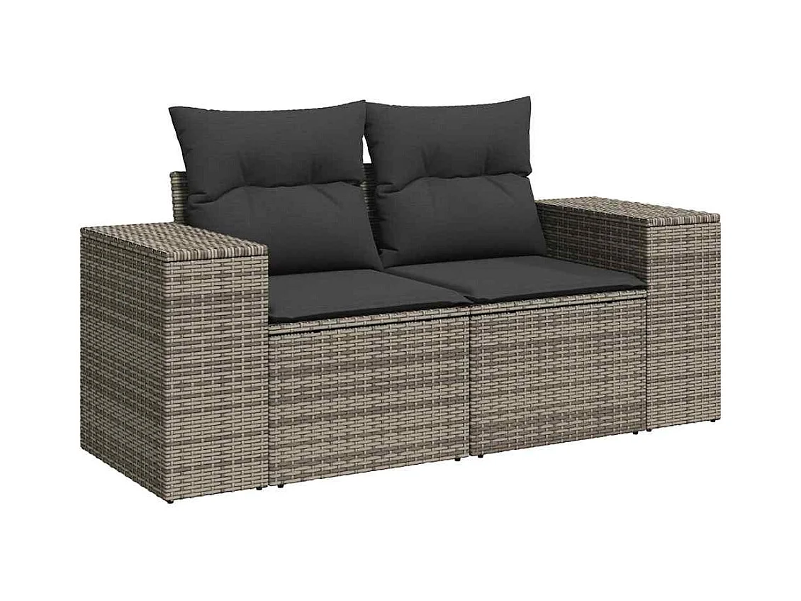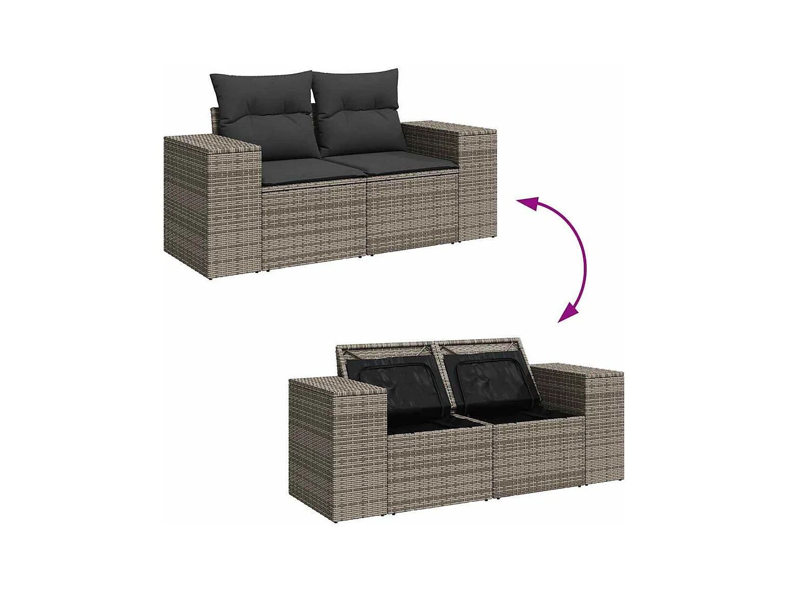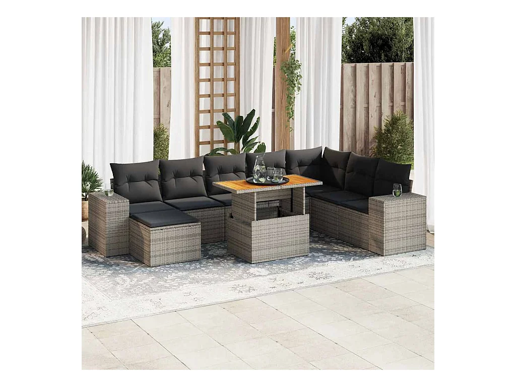 Set sofás jardín y cojines 9 pzas ratán sintético acacia gris