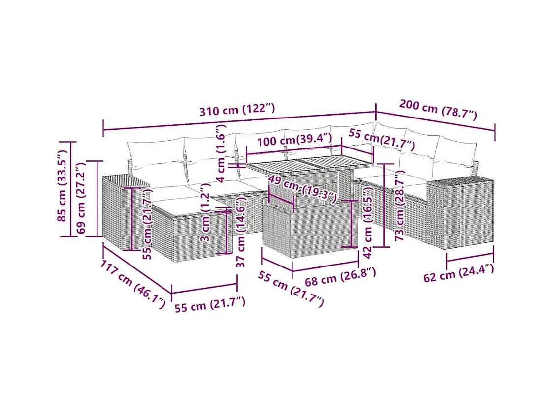 Set de sofás de jardín con cojines 9 pzas ratán sintético gris