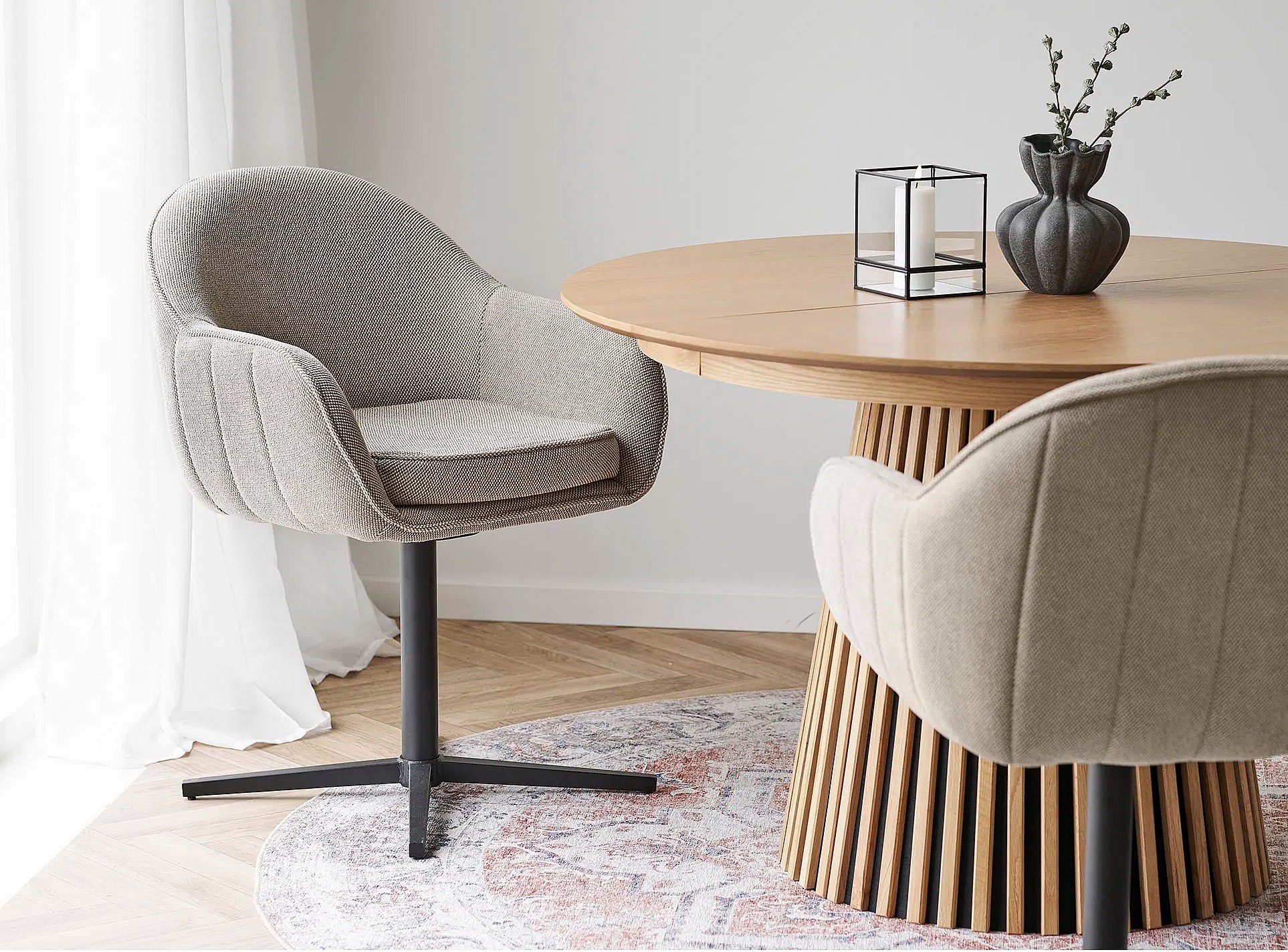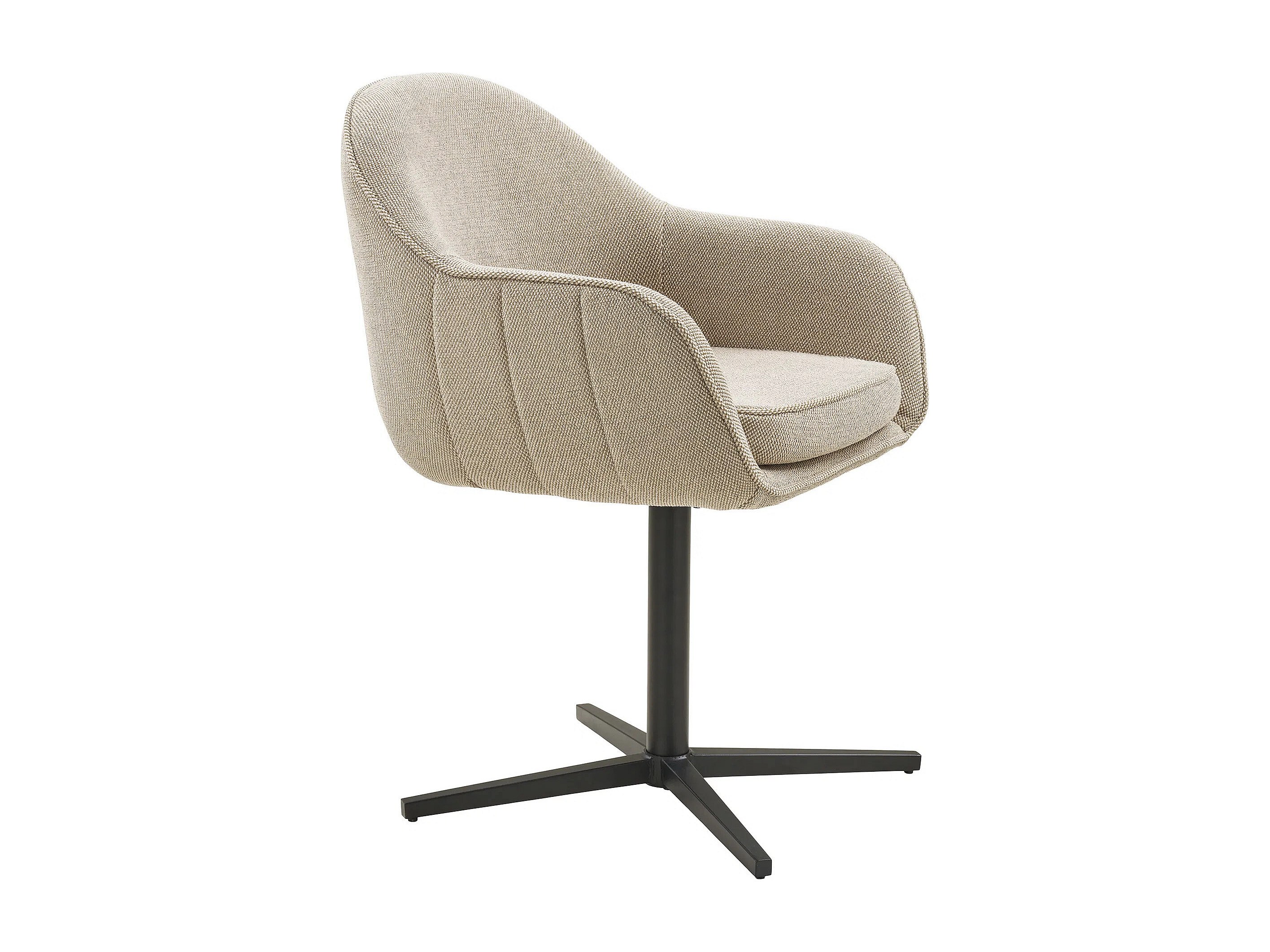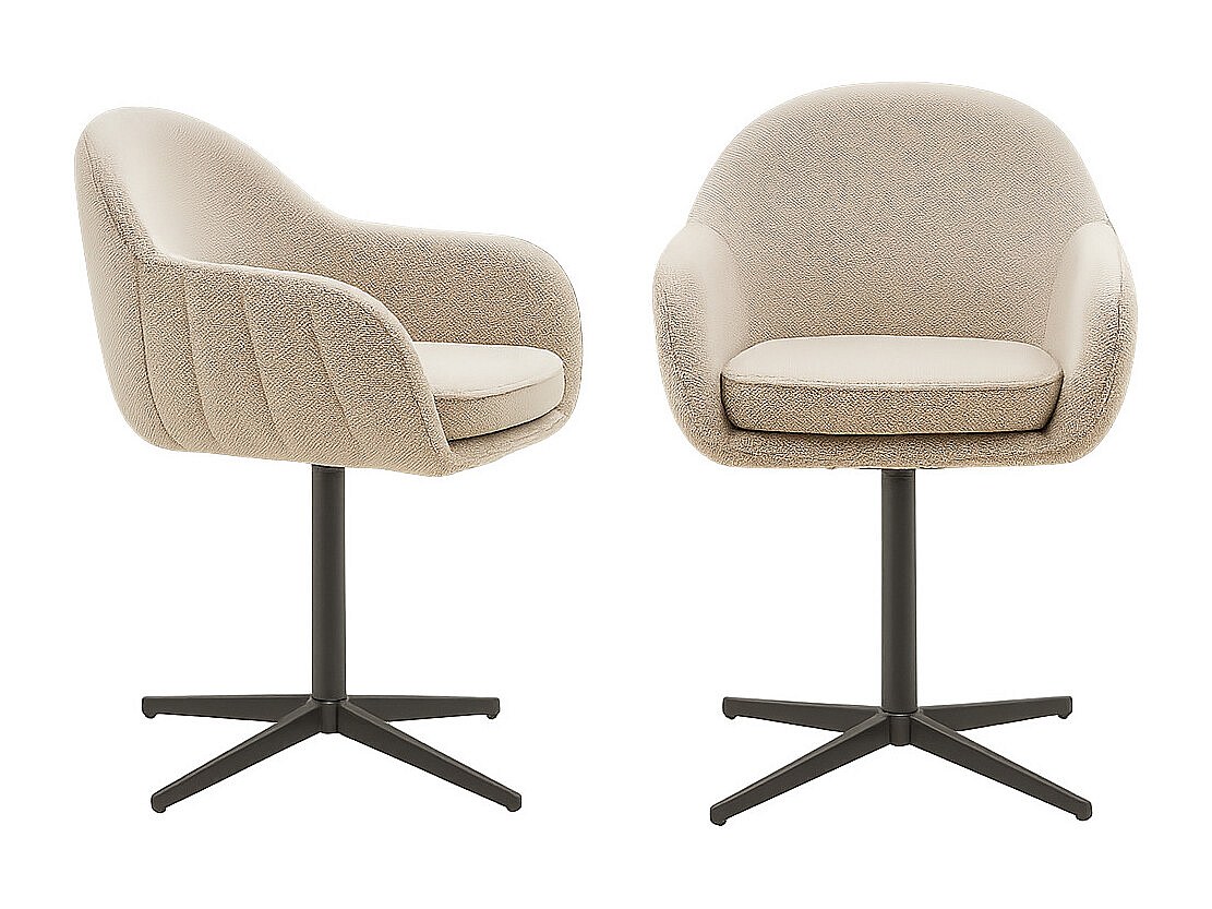 Set van 2 LUMAN eetkamerstoelen – beige stof & draaibare zwarte stalen poten