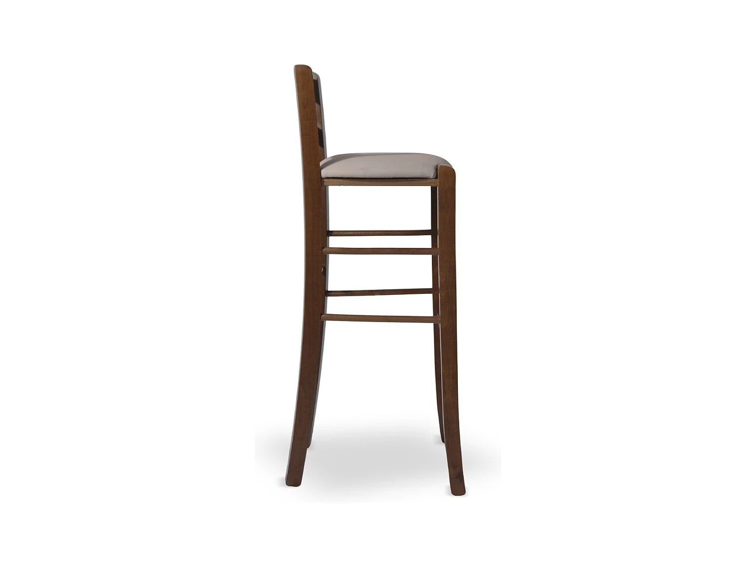 Sgabello bar h 80 in legno noce scuro con manico seduta similpelle tortora