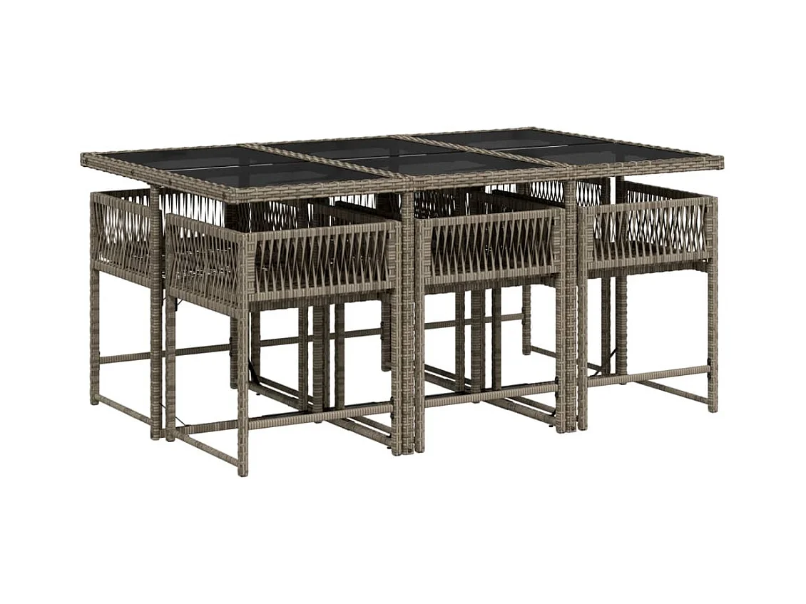 Sharif Set comedor jardín 7 pzas y cojines ratán sintético gris