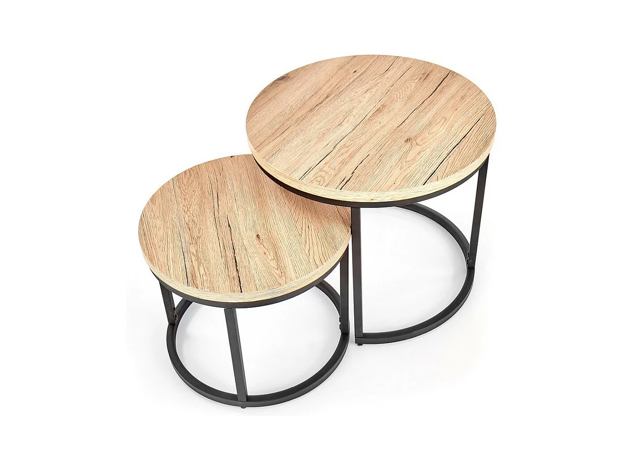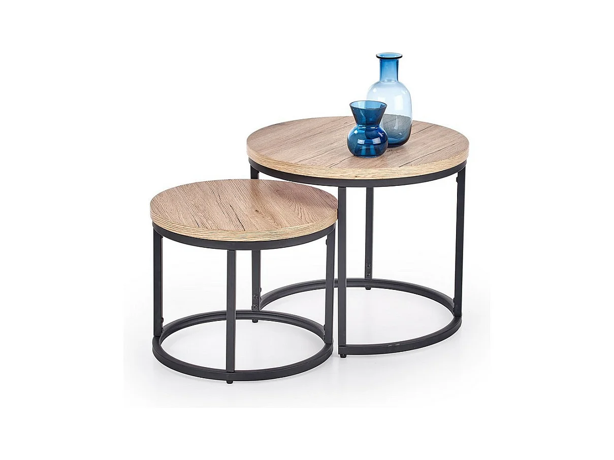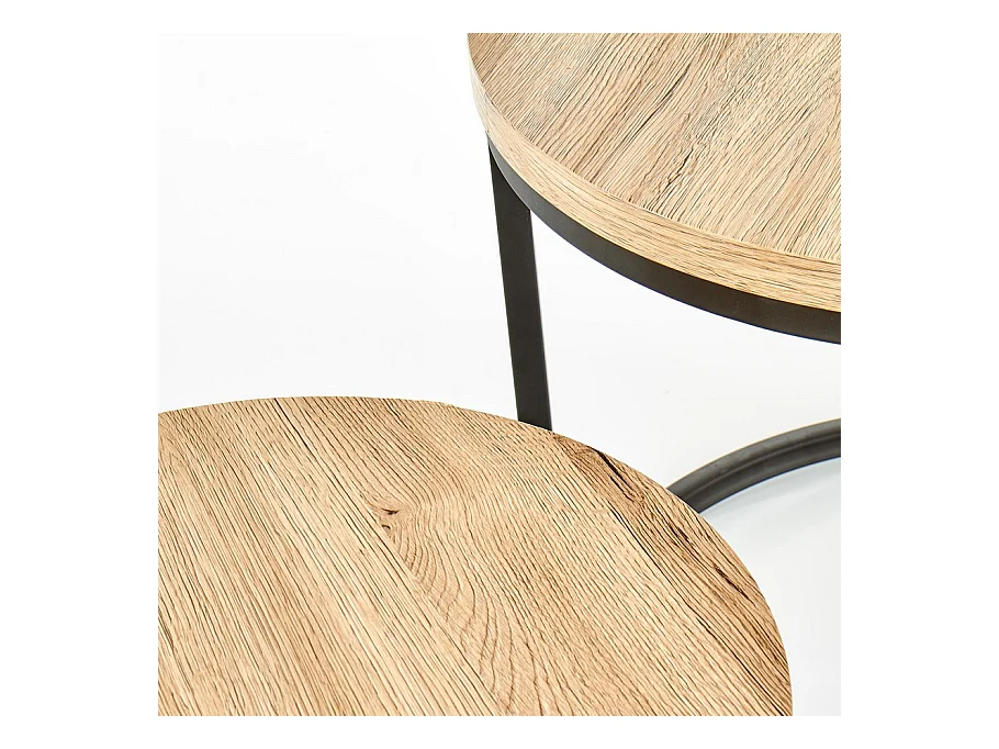 Siete mesas nido redondas de madera y metal