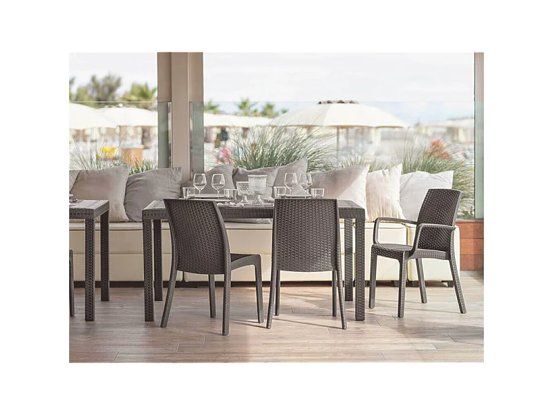 Silla apilable de ratán con reposabrazos para bar y jardín Indiana BICA