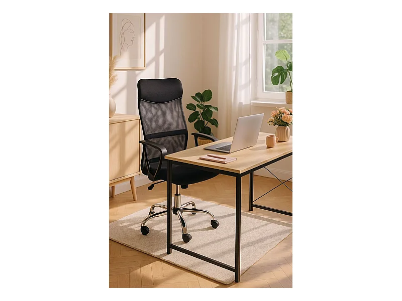 Silla despacho giratoria Esther tapizada en tejido transpirable negro, 111/121cm(alto) 61c