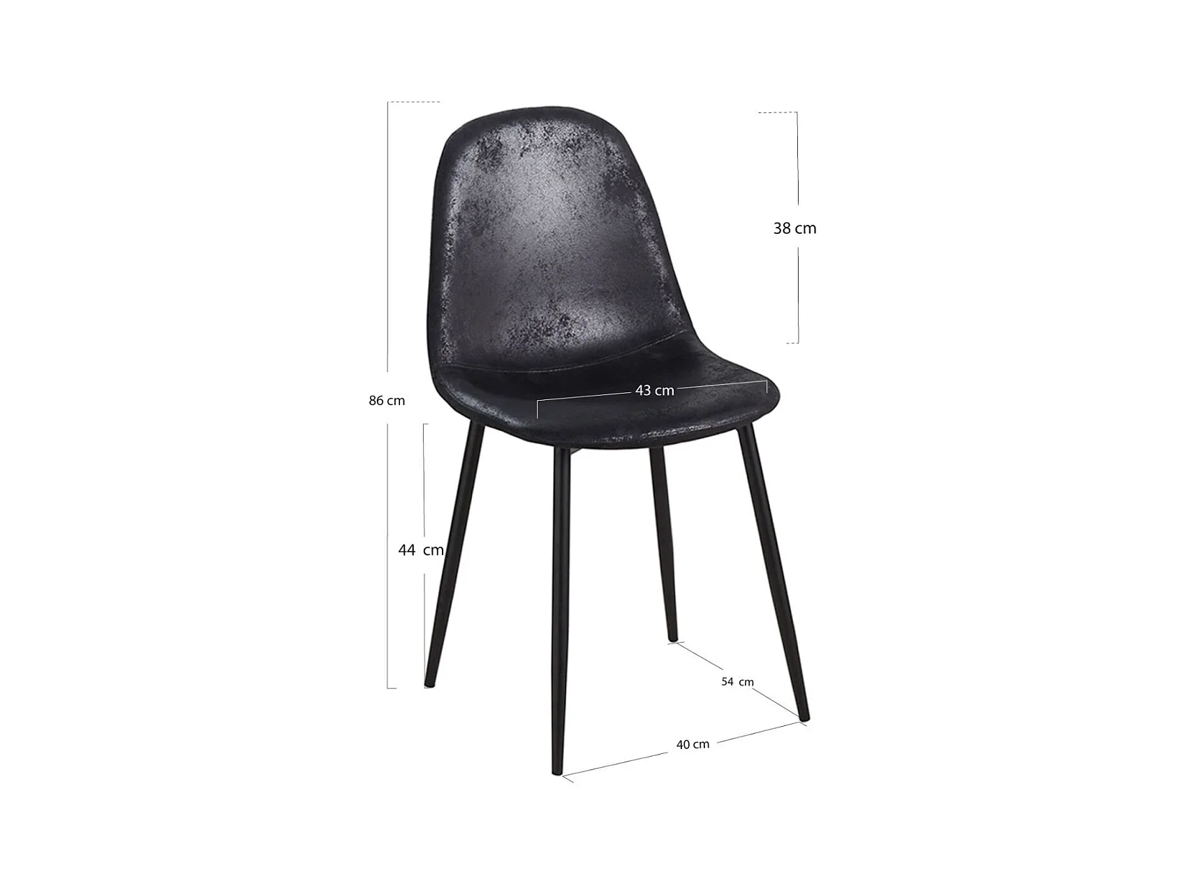 Silla de comedor en cuero sintético negro con pies negros