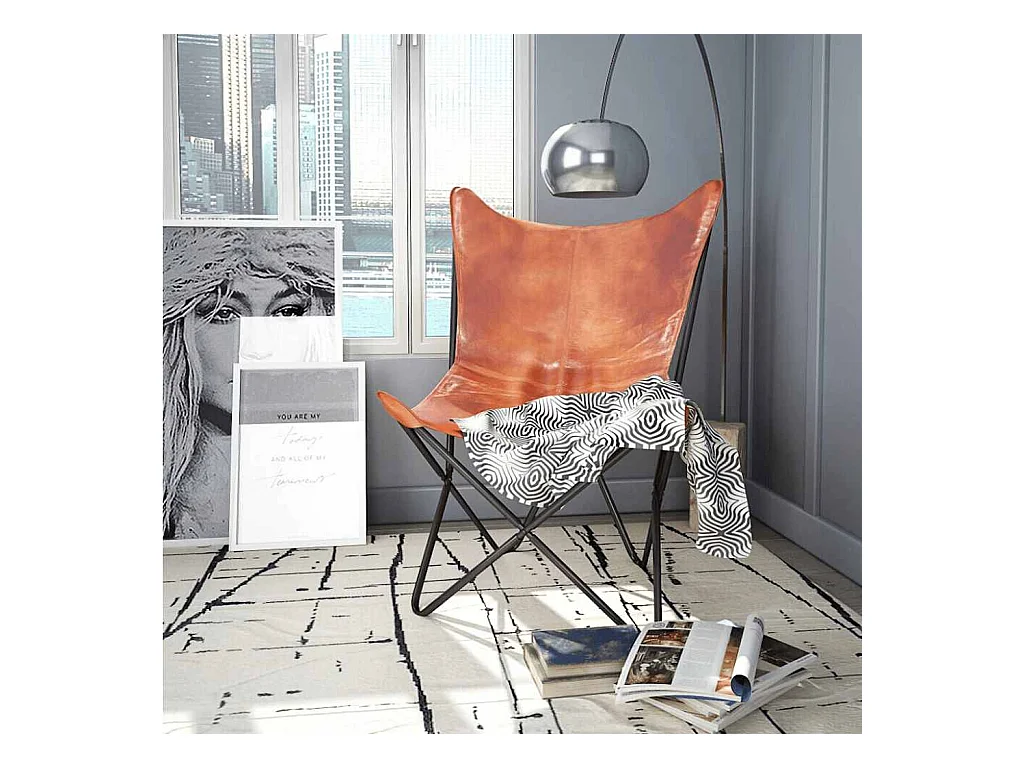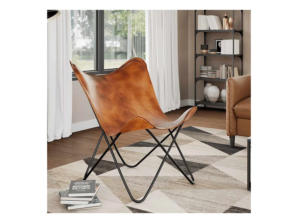Silla Butterfly de cuero auténtico marrón 74x66x90 cm SHL4446