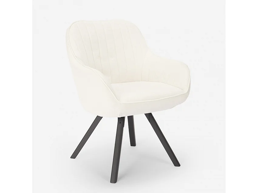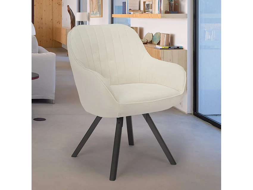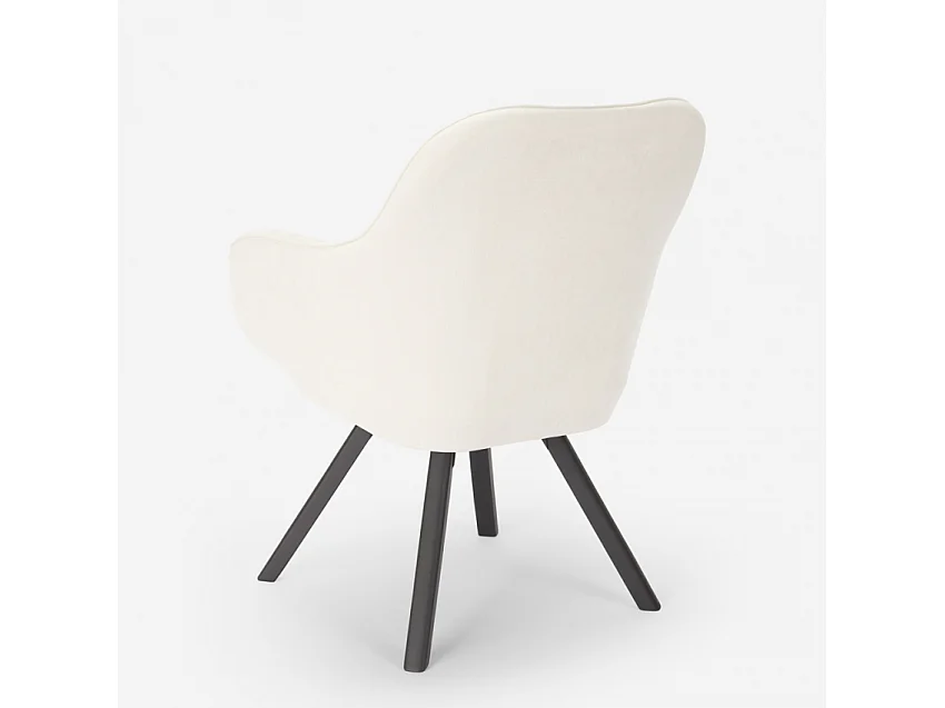 Sillón de comedor en tela blanco jaspeado y patas de metal negro - Socky