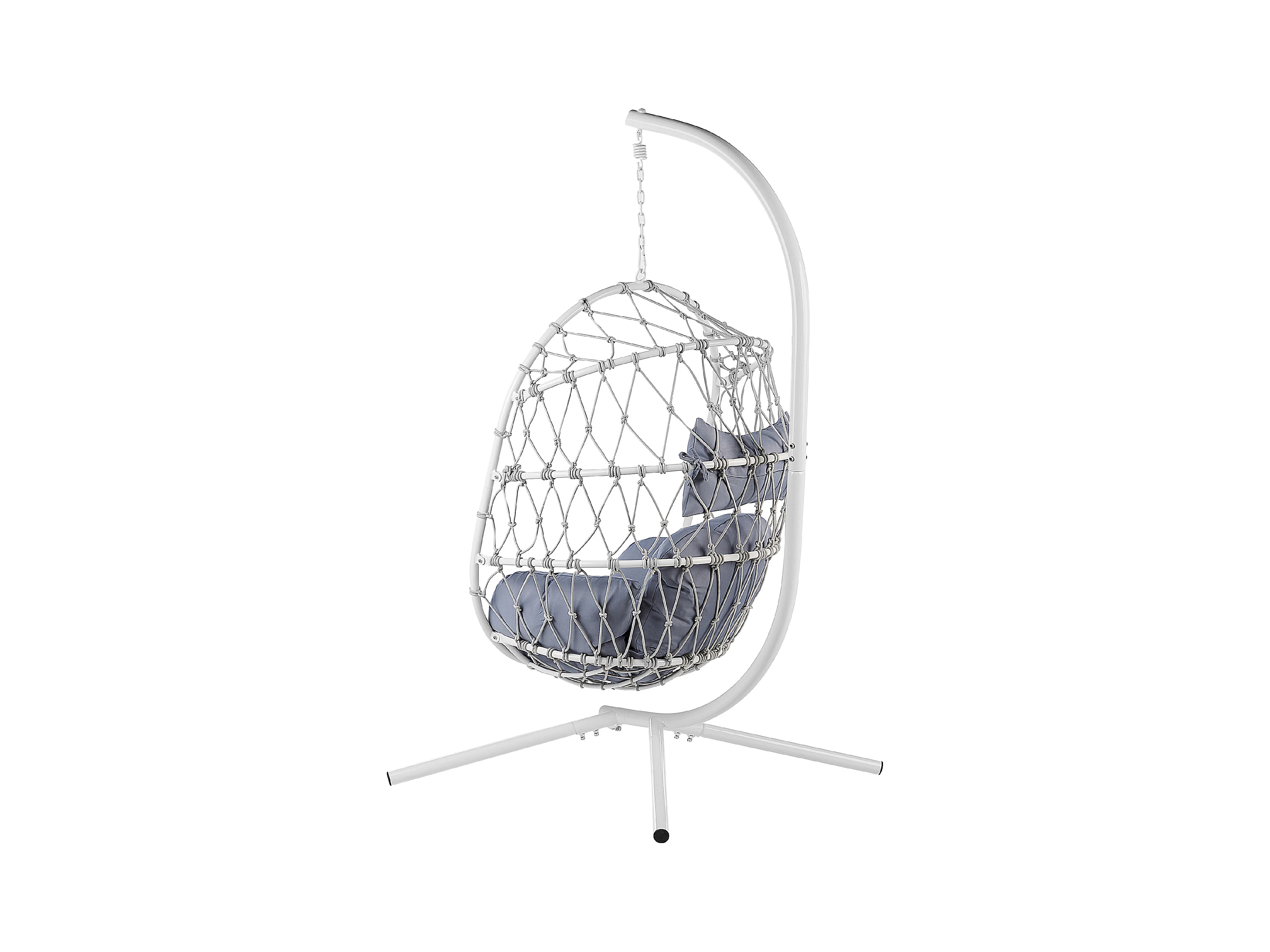Sillón colgante ovalado de acero con efecto ratán natural BINO – Elegancia aérea-Color Blanco