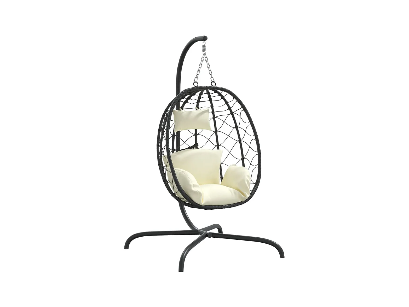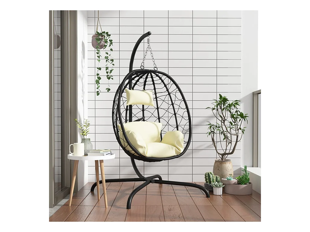 Silla colgante en forma de huevo con cojín blanco crema