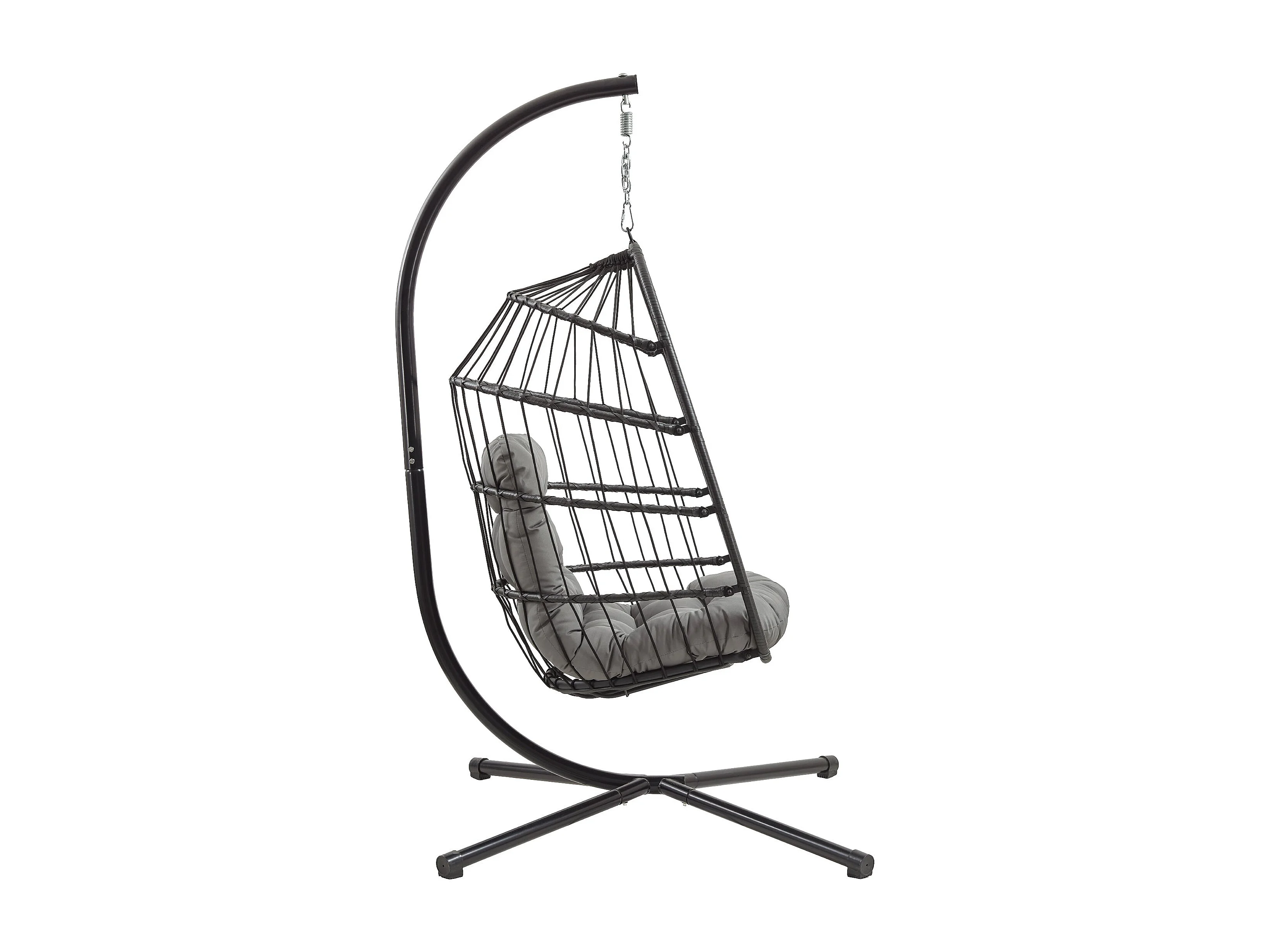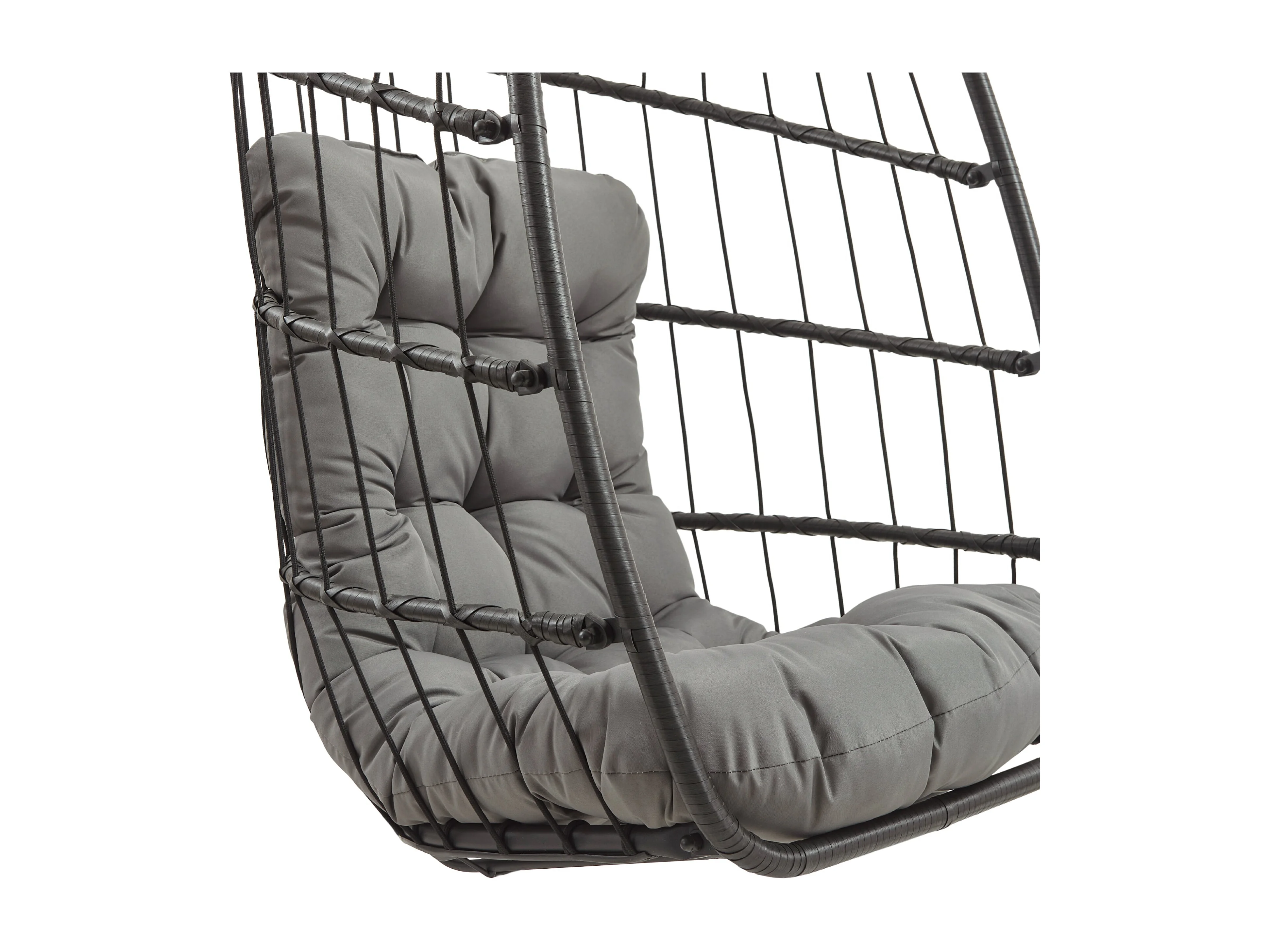 Silla Colgante Tipo Huevo Ratán Negro con Soporte + Cojín Extra Grueso 15cm