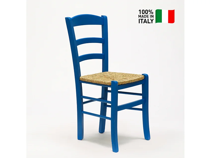 Silla Comedor Rústica Madera Asiento Artesanal Para Cocina Bar y Taberna Paesana - Azul