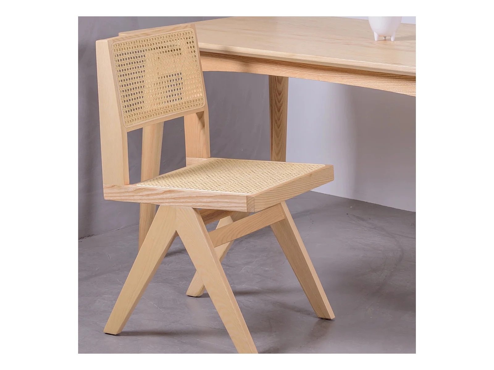 Silla cásica en rattan natural y madera de fresno - Compass - Fresno Natural
