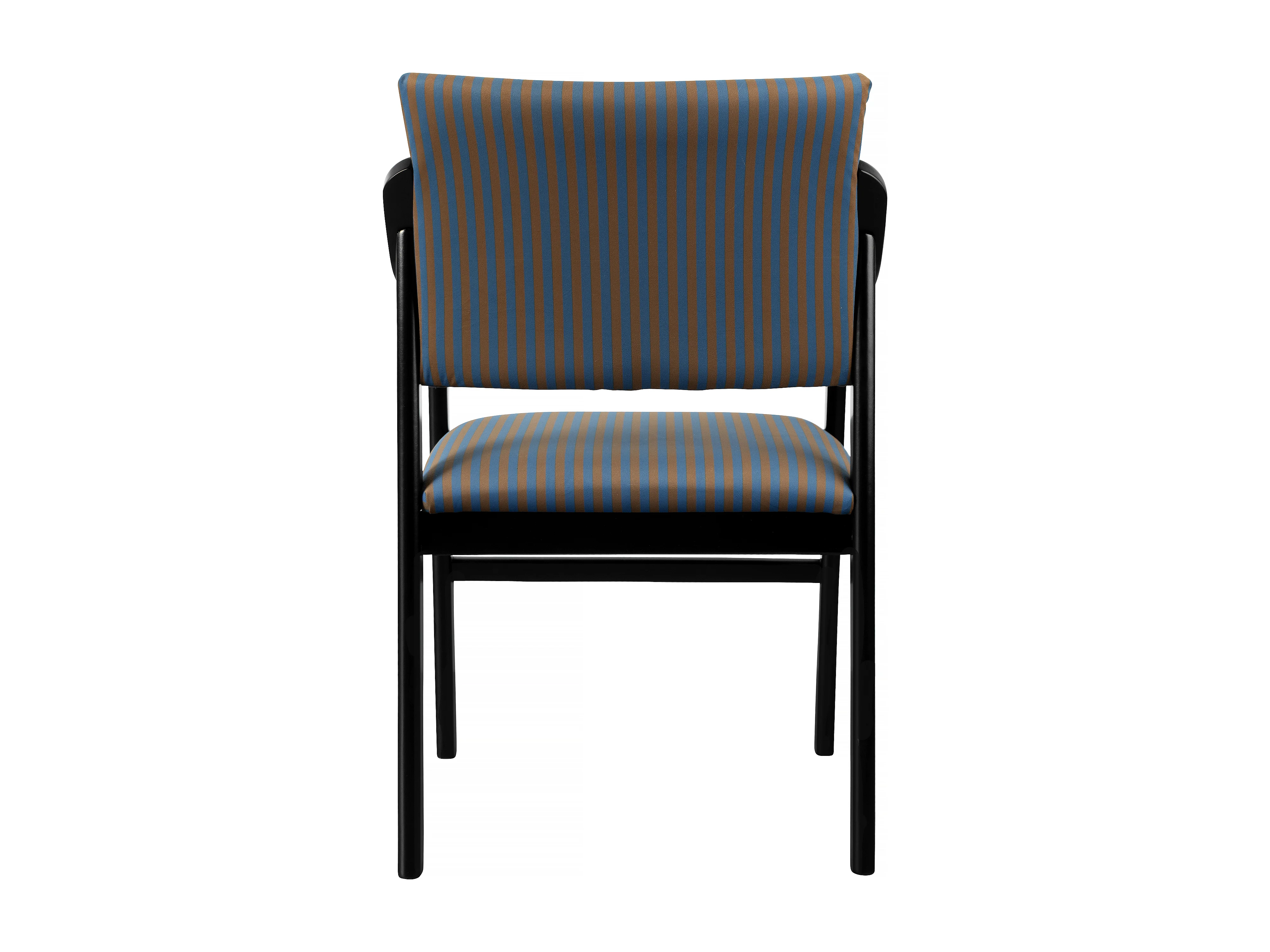 Silla con reposabrazos madera negra y tejido a rayas azules y naranjas ETIENNE