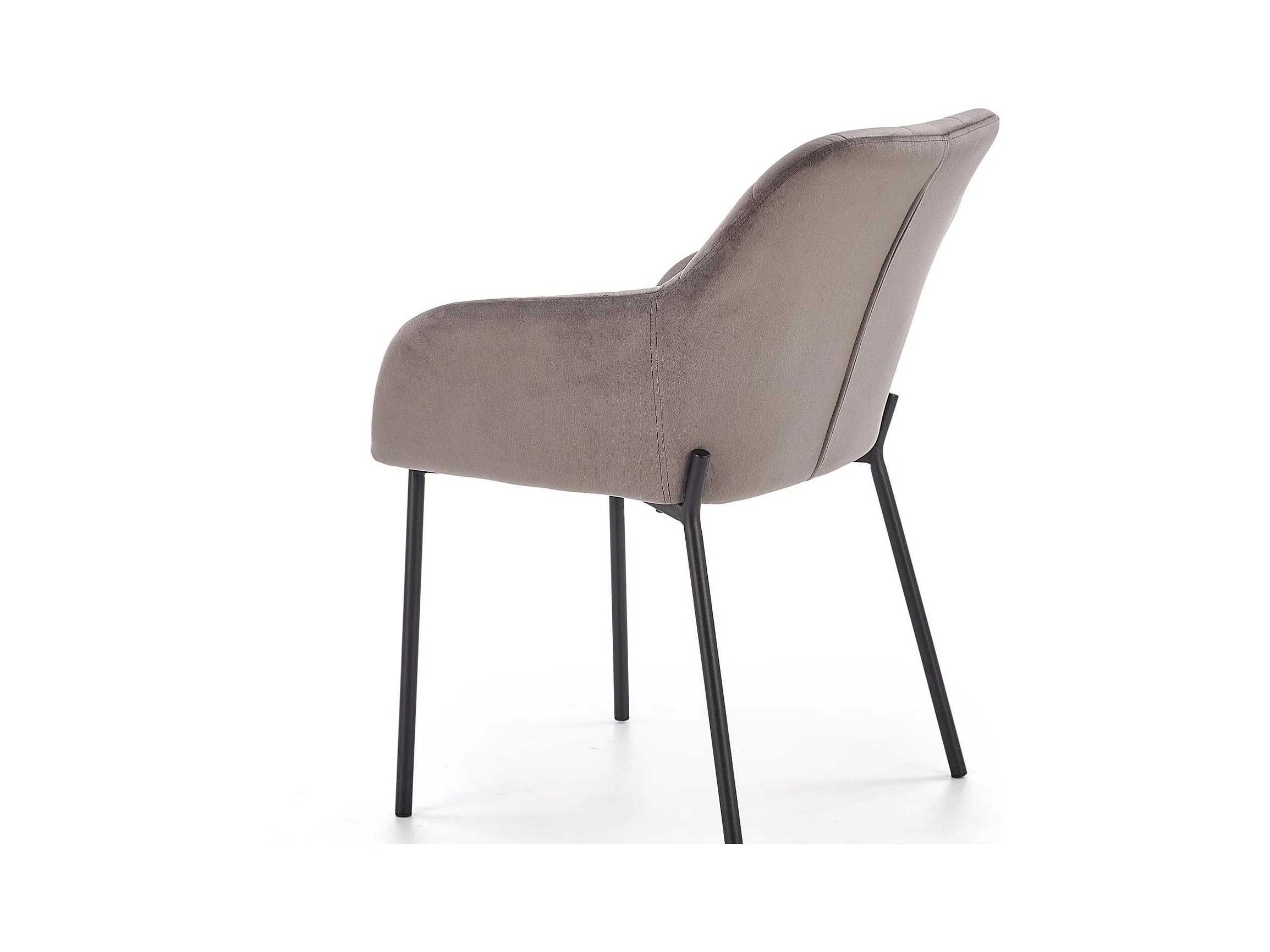 Silla contemporánea de terciopelo gris con patas de metal negro EDISON