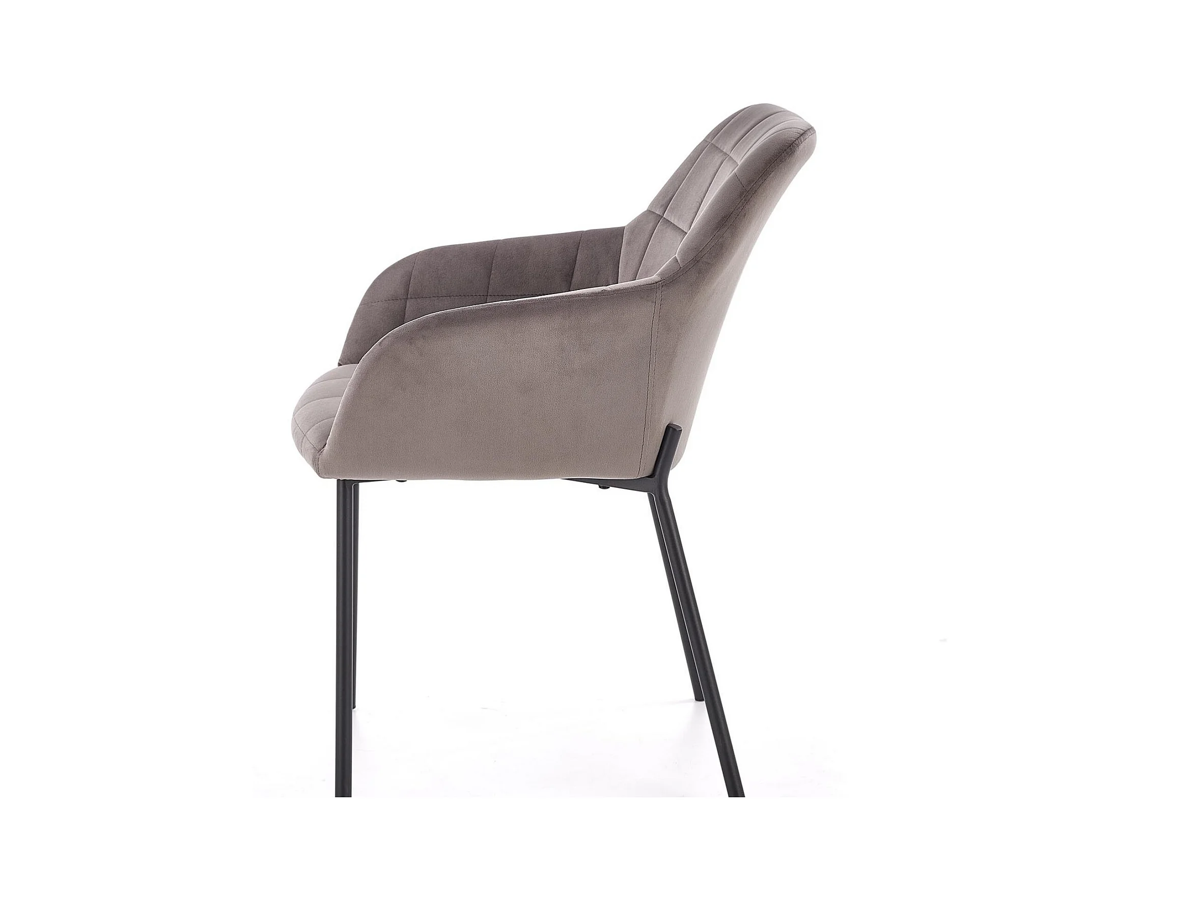 Silla contemporánea de terciopelo gris con brazos y patas de metal negro DOVE
