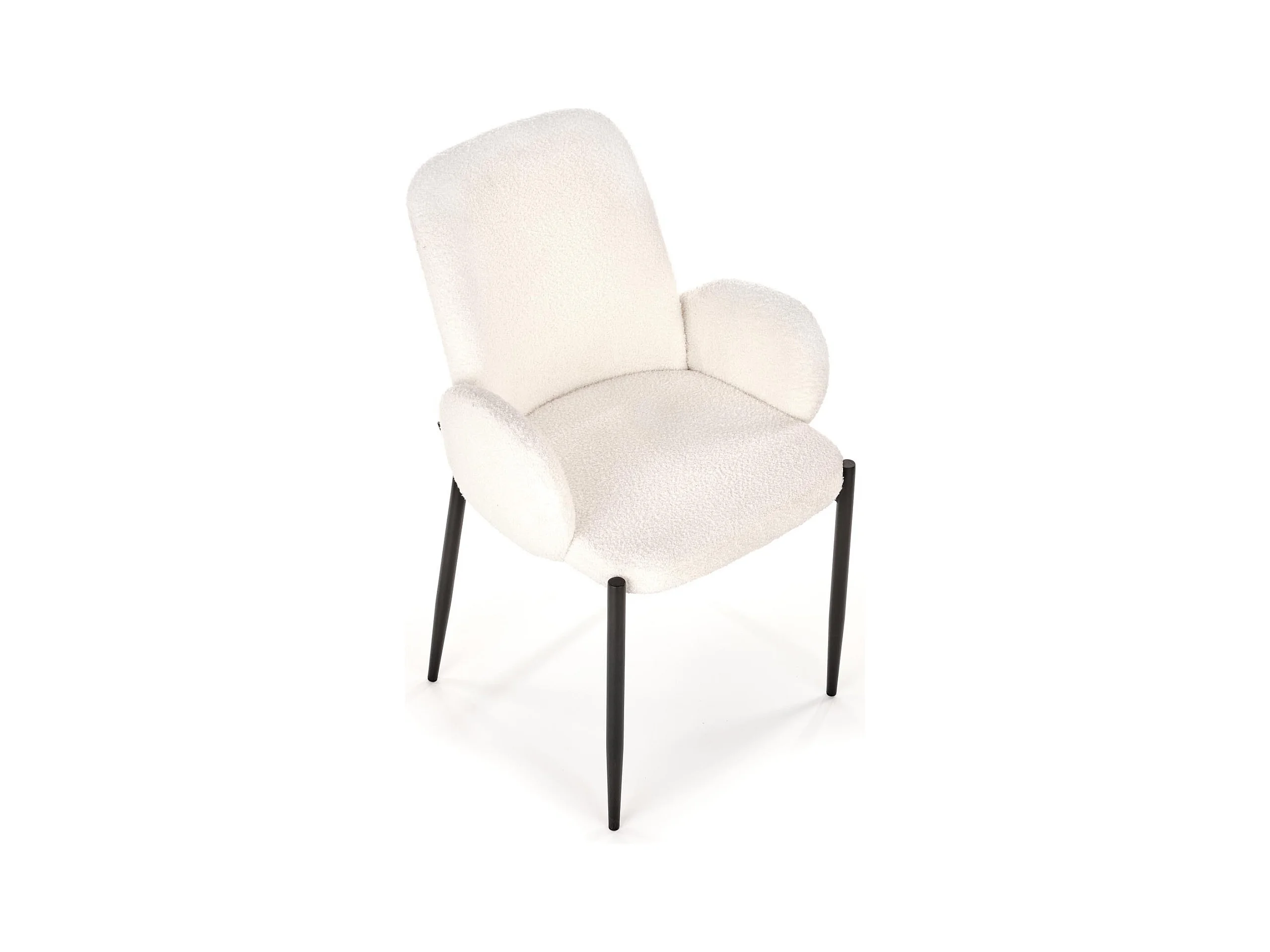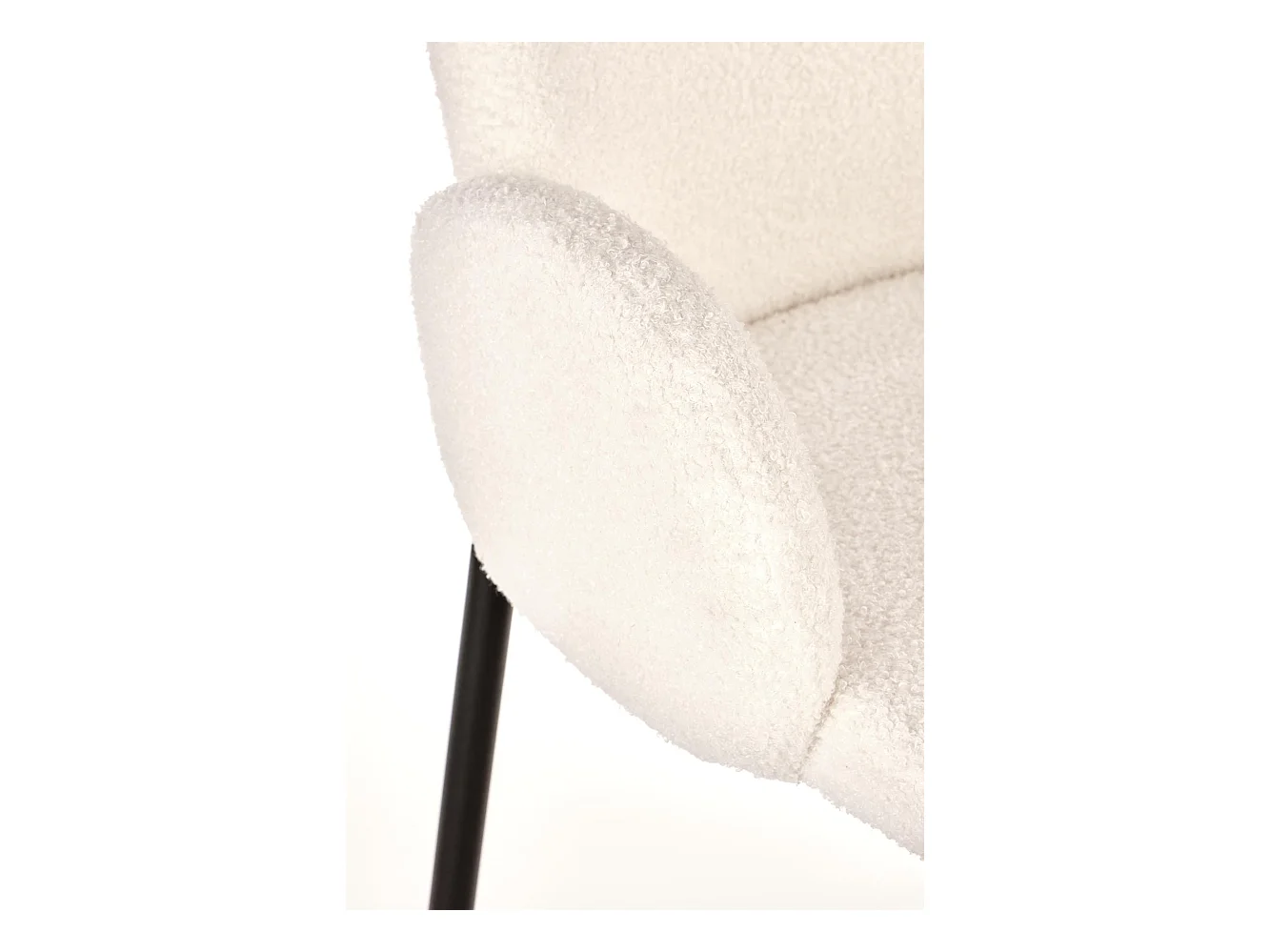 Silla contemporánea en tejido bouclé crema con brazos y patas de metal negro HORN
