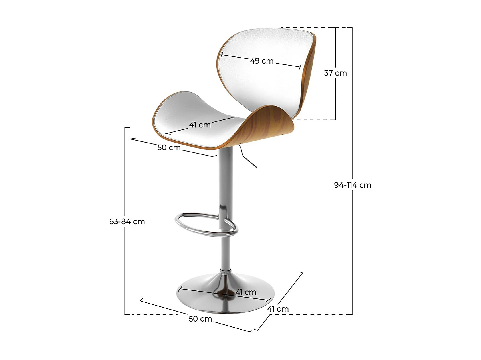 Silla de bar ajustable 63/84 cm en piel artificial blanca - Baudoin