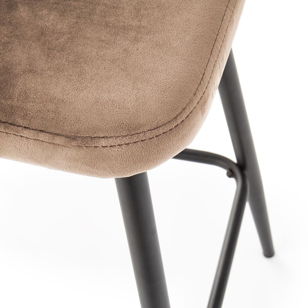 Silla de bar de terciopelo beige con patas de metal negro FIT