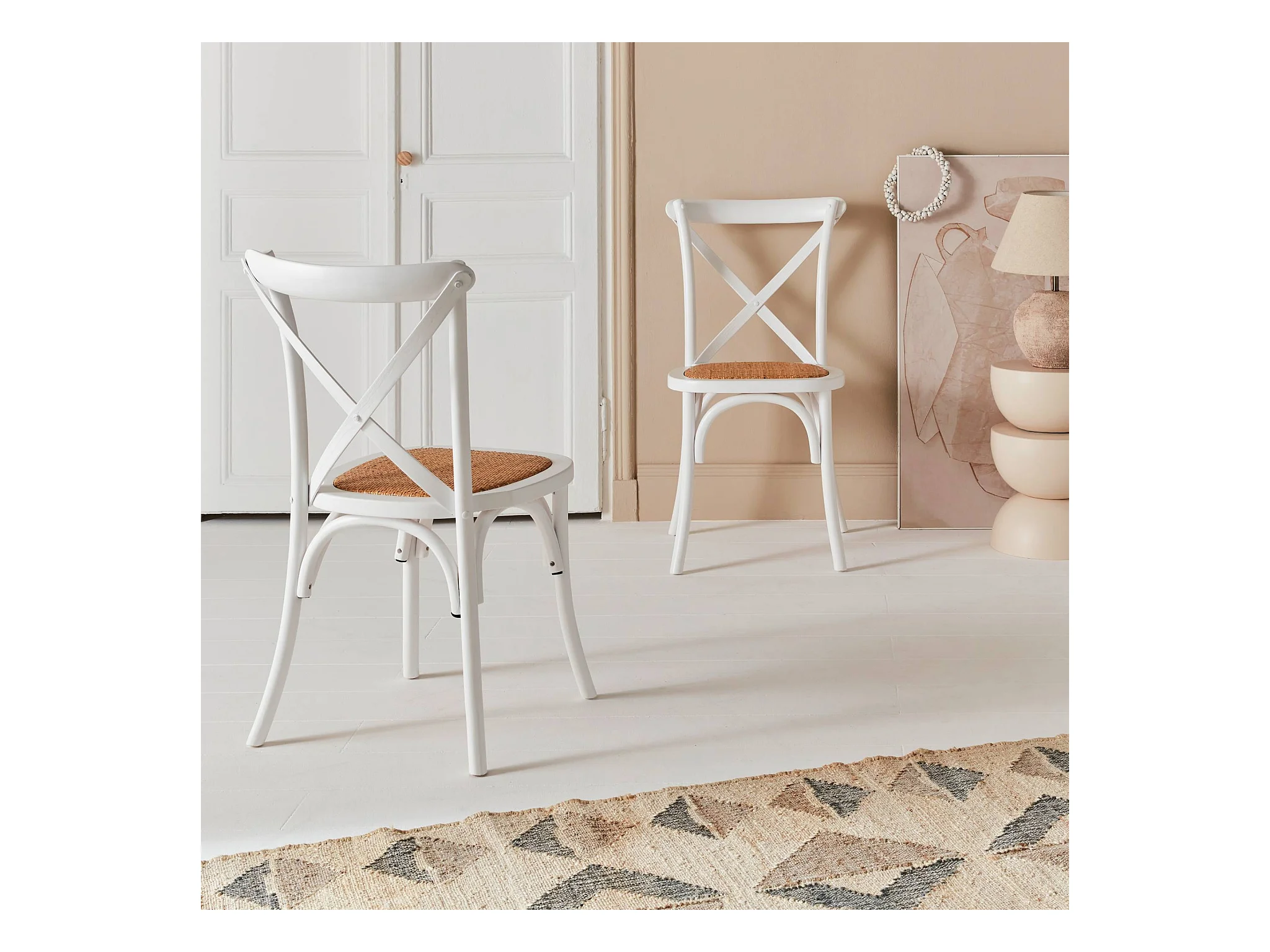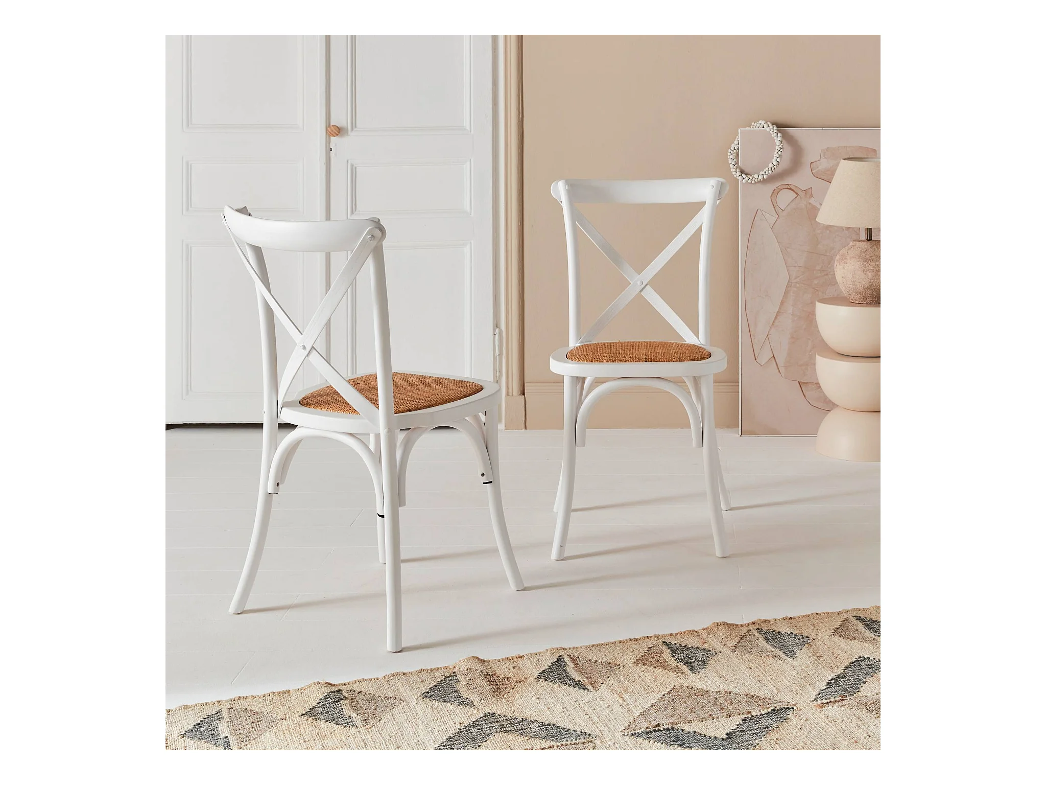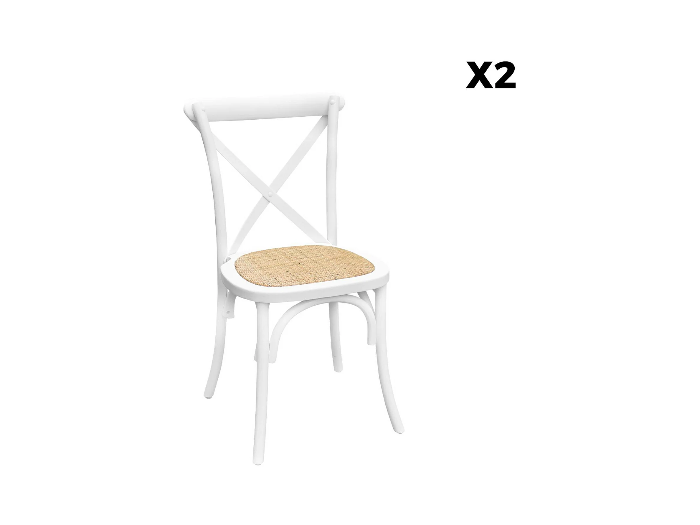 Lote de 2 sillas de bistrot de madera maciza MONA, estilo retro con barrotes (blanco)