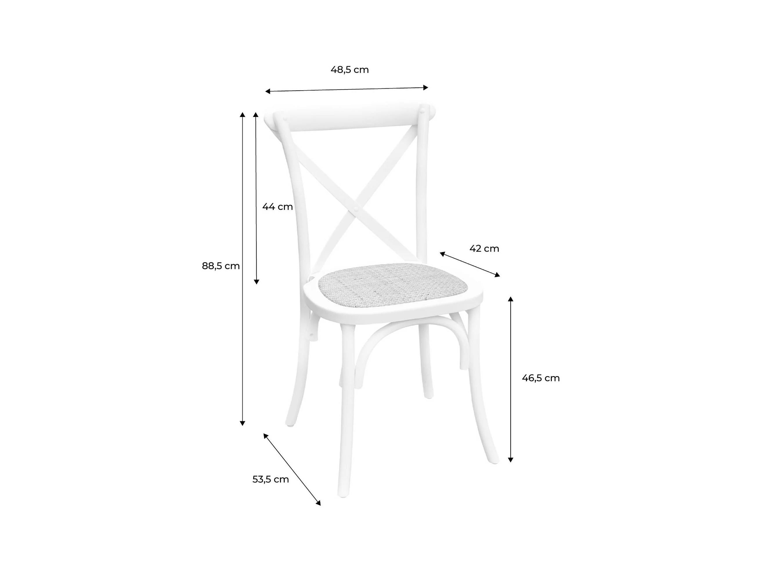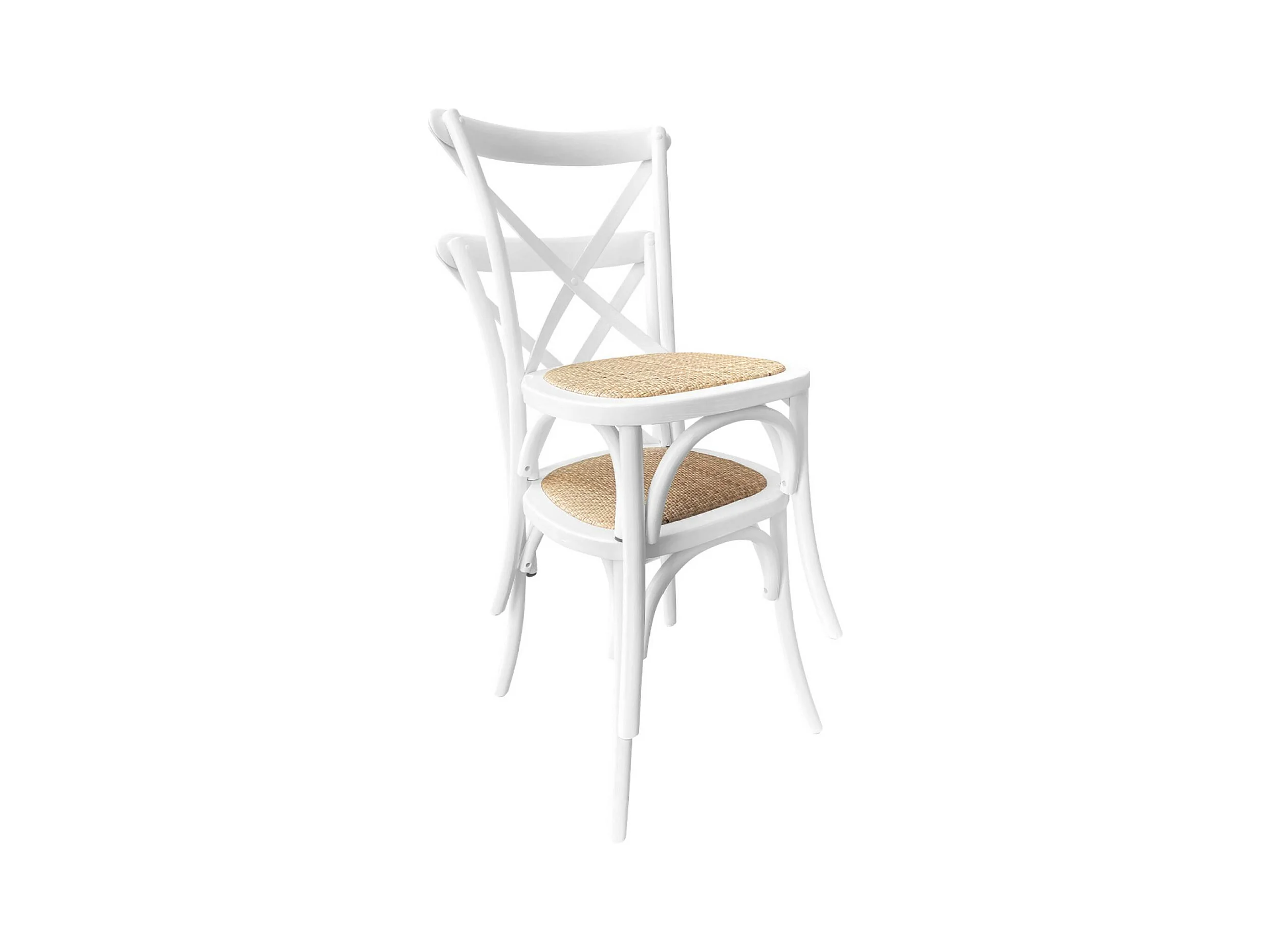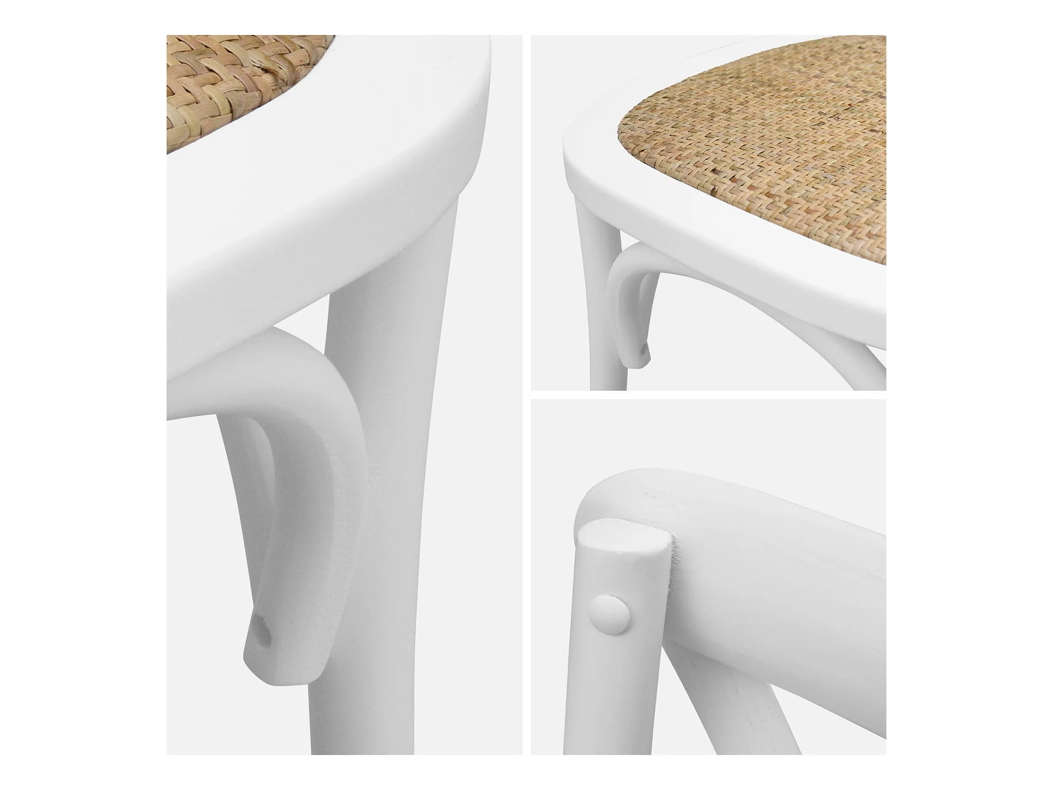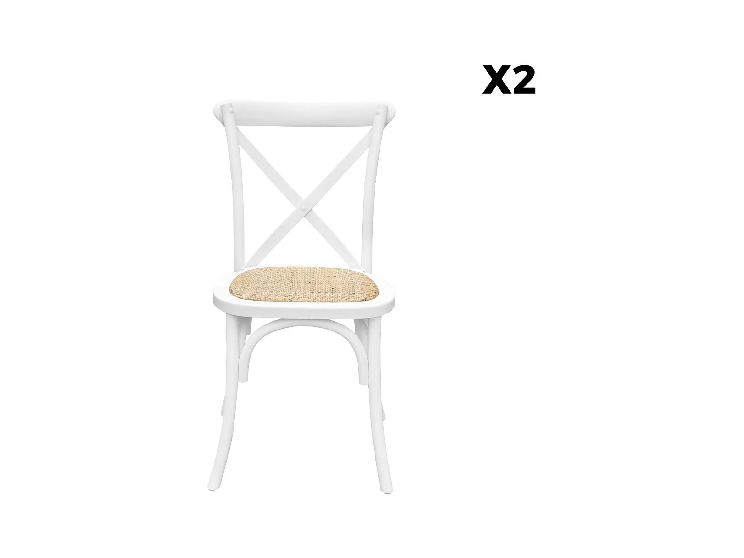 Lote de 2 sillas de bistrot de madera maciza MONA, estilo retro con barrotes (blanco)