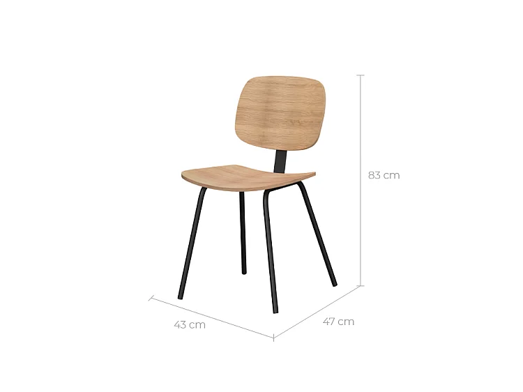 Set de 2 sillas de chapa de fresno con patas de metal - Hoodie