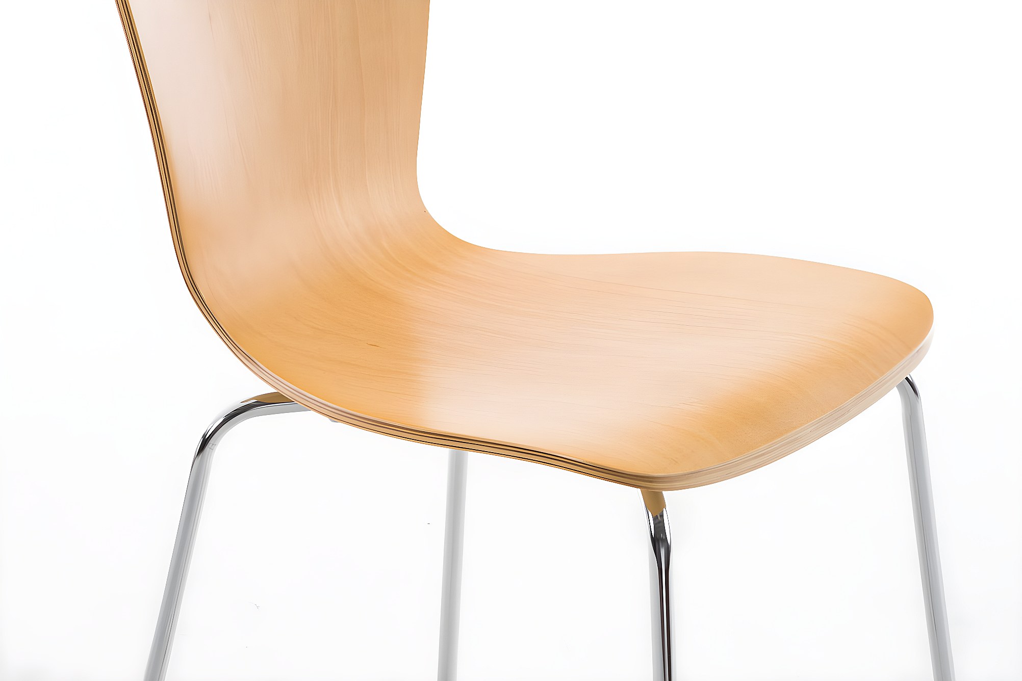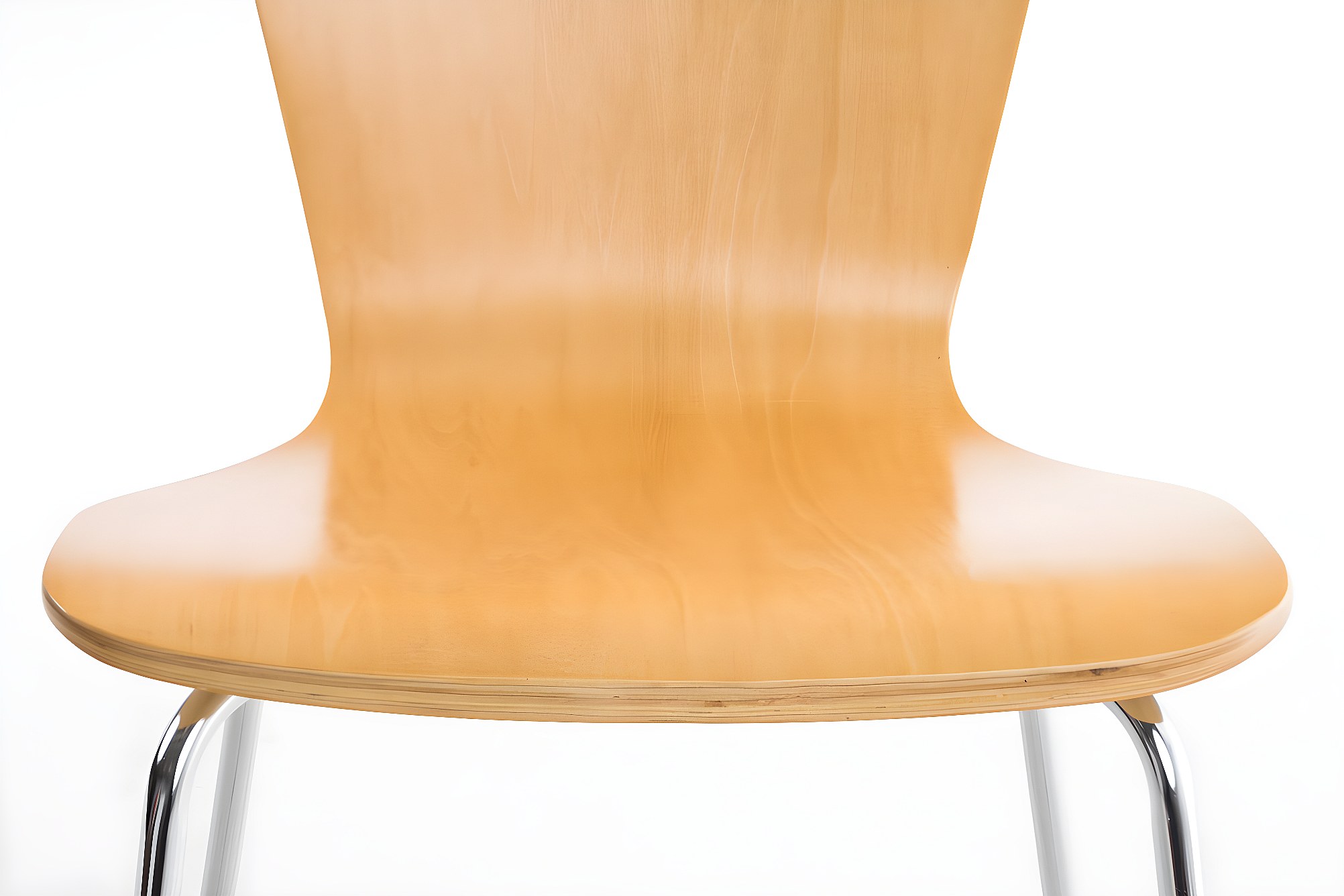 Silla de cocina o comedor diseño simple madera color natural pie metal cromado M10_001882