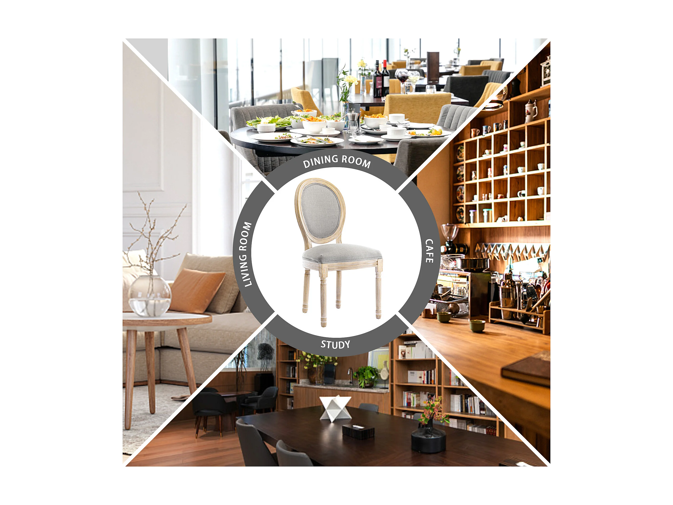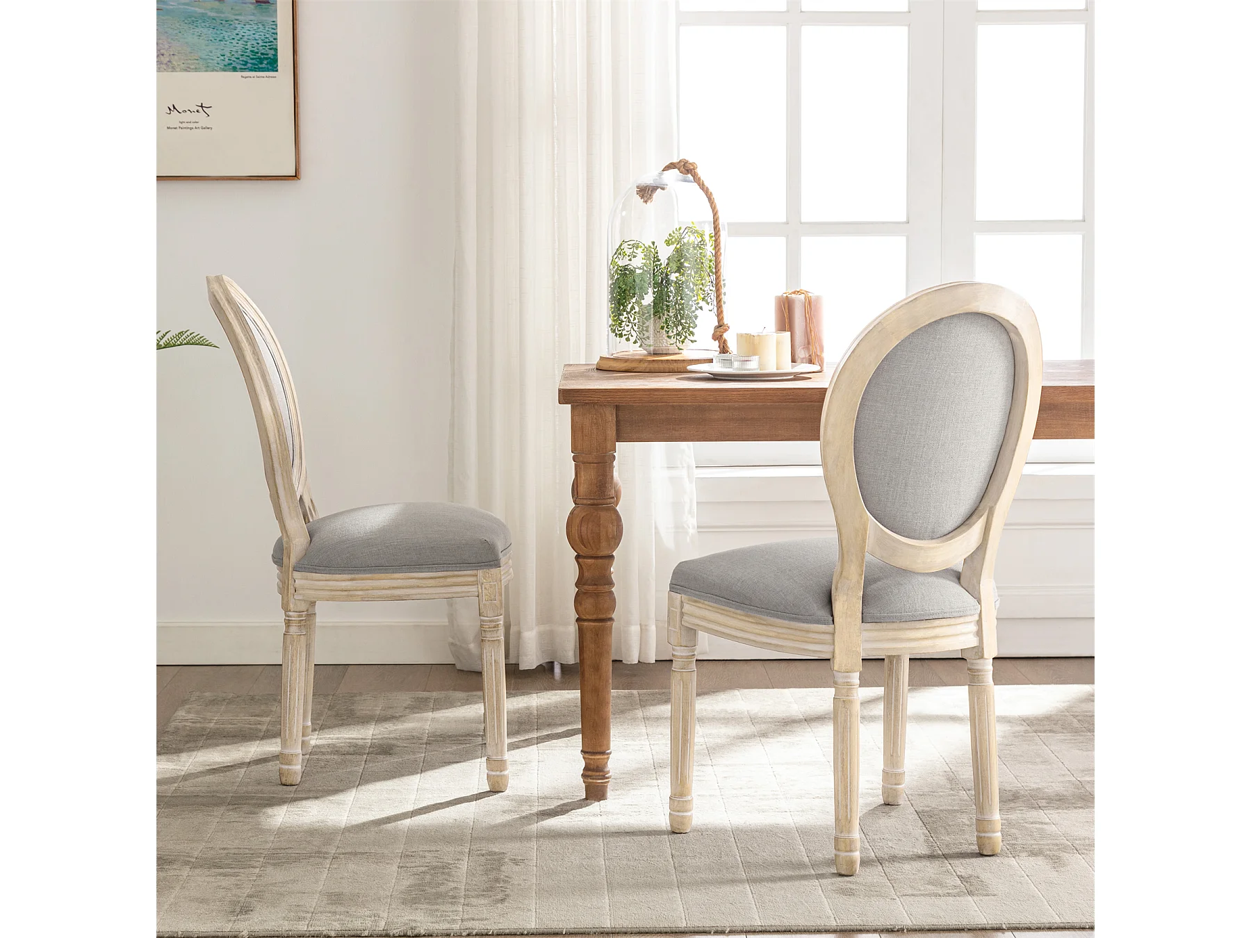 Silla de comedor barroca, sillas de comedor estilo rústico francés, silla barroca, silla tapizada, juego de 2 sillas de cocina de madera, color gris