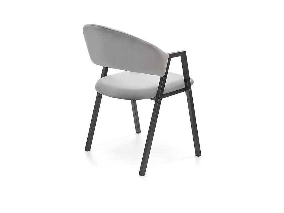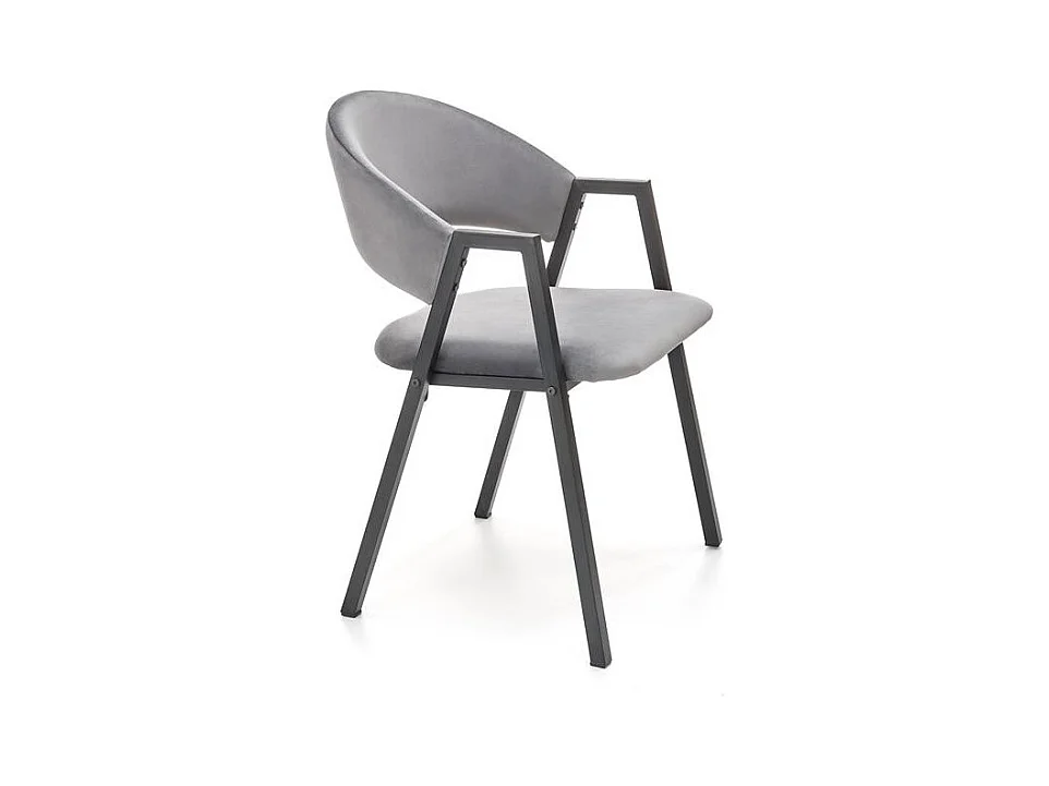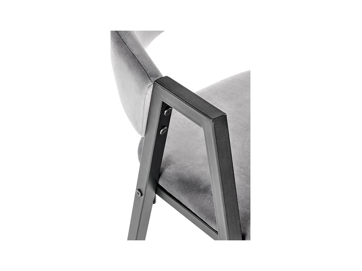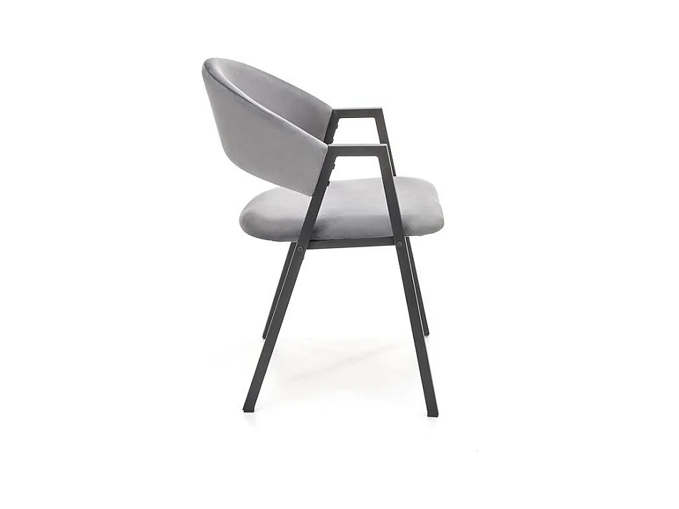 Silla contemporánea de terciopelo gris con brazos y patas de metal negro DOVE