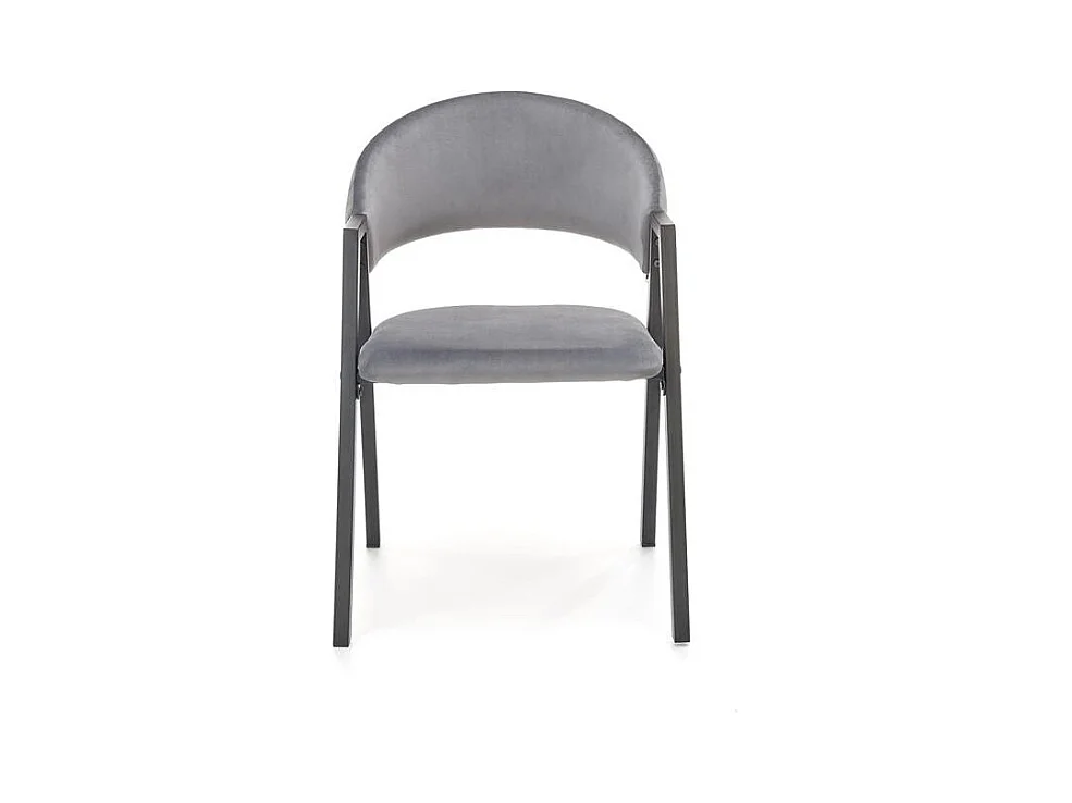 Silla contemporánea de terciopelo gris con patas de metal negro EDISON