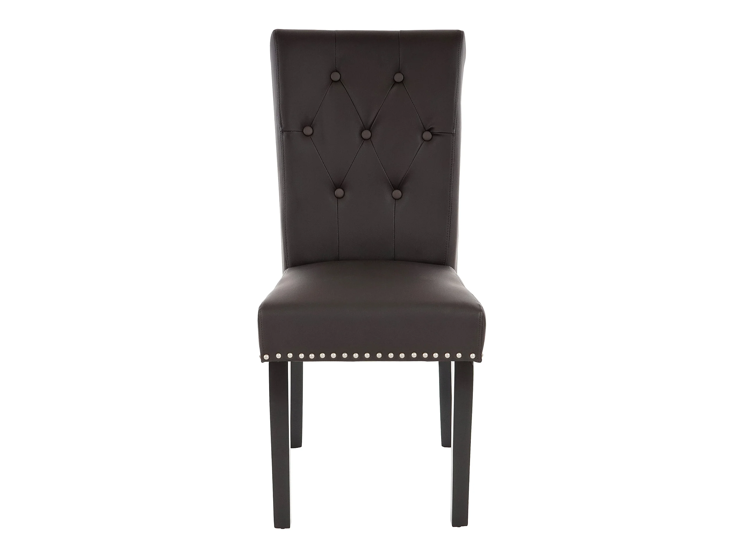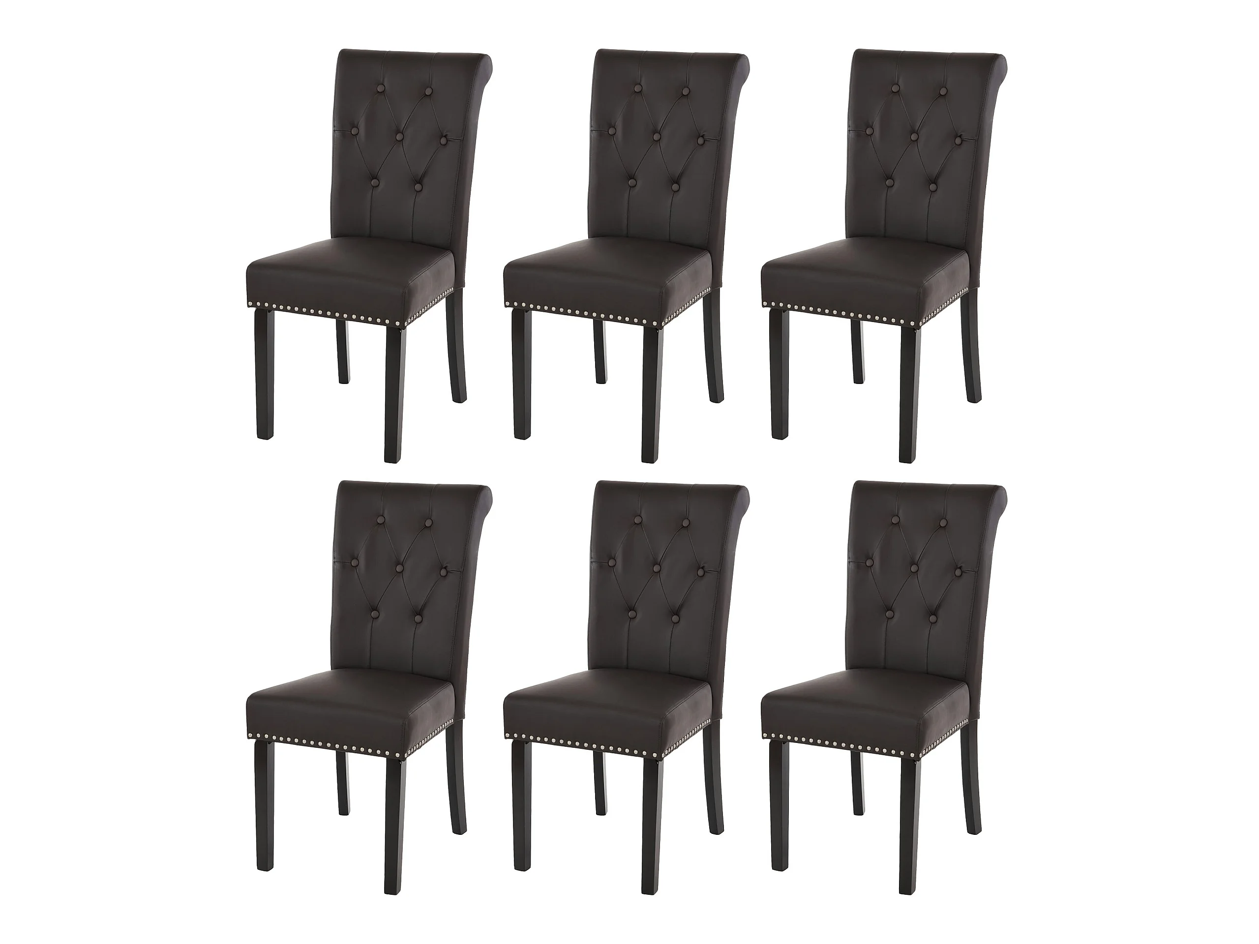 Silla de comedor Chesterfield II (juego de 6), imitación de cuero, café, patas oscuras